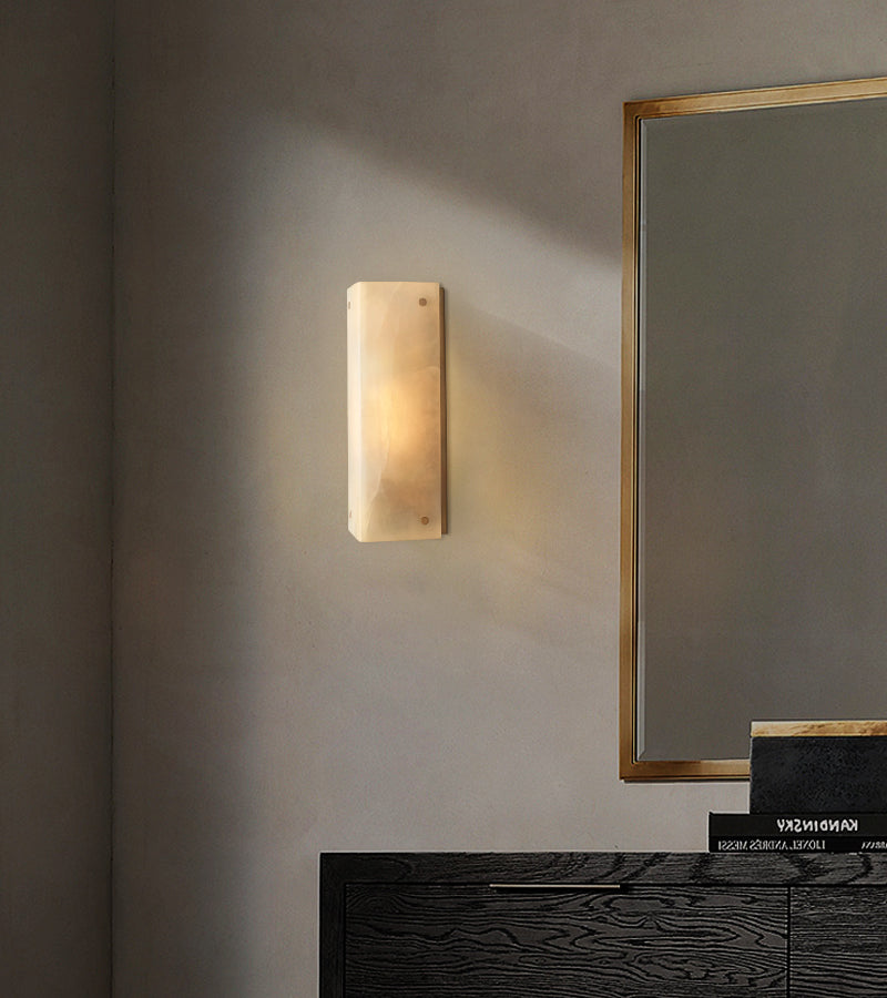 The Reynard Alabaster Sconce, a modern and stylish lighting solution for your home. Crafted with a brass frame and an Alabaster cover, this wall light not only adds a touch of sophistication but also provides energy-efficient illumination. The warm and soft light it emits creates a welcoming atmosphere in any room.
