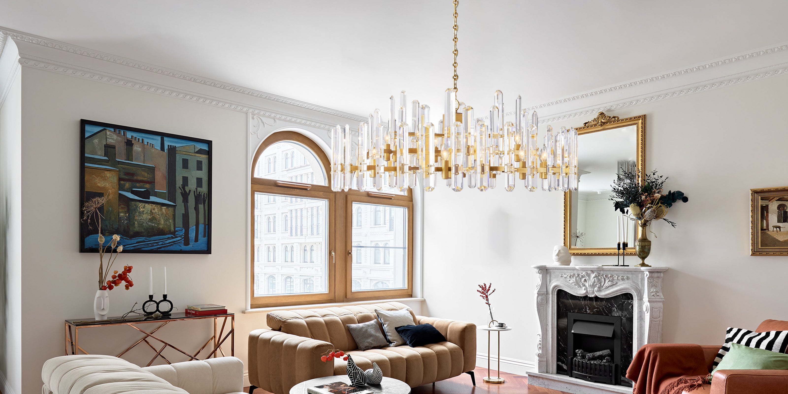 A fusion ofclassic American luxuryandmodern artistry, this chandelier transforms ceilings into focal points. Ideal for elevating transitional or contemporary decor with its harmonious balance of industrial brass and delicate crystal.