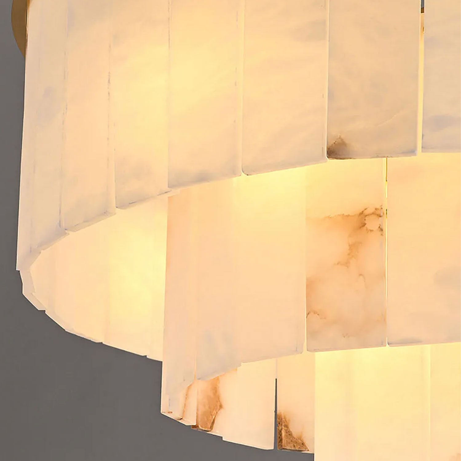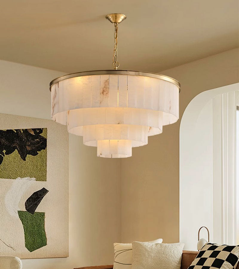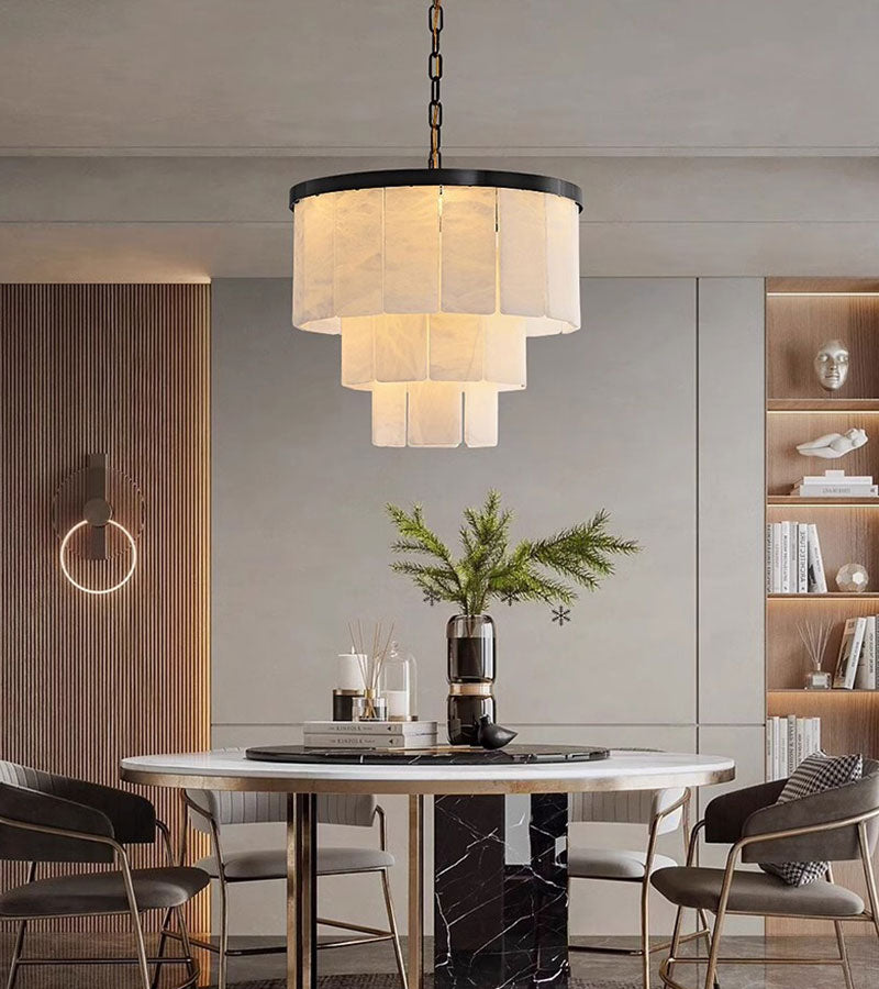 The stunning ceiling-mounted alabaster series lamps combine the elegance and functionality of modern large chandeliers, perfectly suited to a variety of room sizes, and the delicate balance between texture and color enhances the luxury of the space.