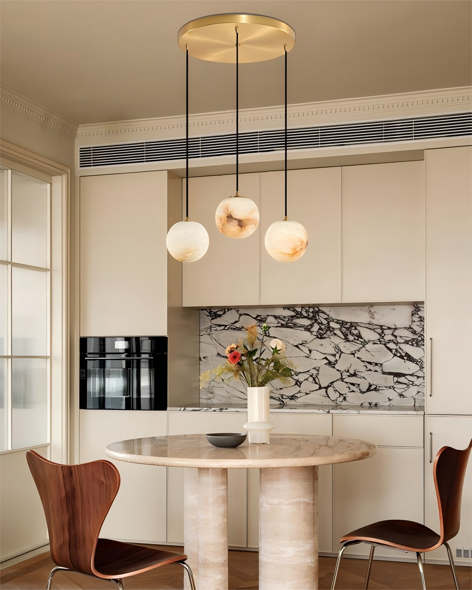 Cluster Lighting Pendant fixture is a stunning lighting fixture that features an alabaster lampshade. Its elegant design adds a touch of sophistication to any interior. With its warm and gentle glow, creating a cozy atmosphere in your living room, dining area, or bedroom.