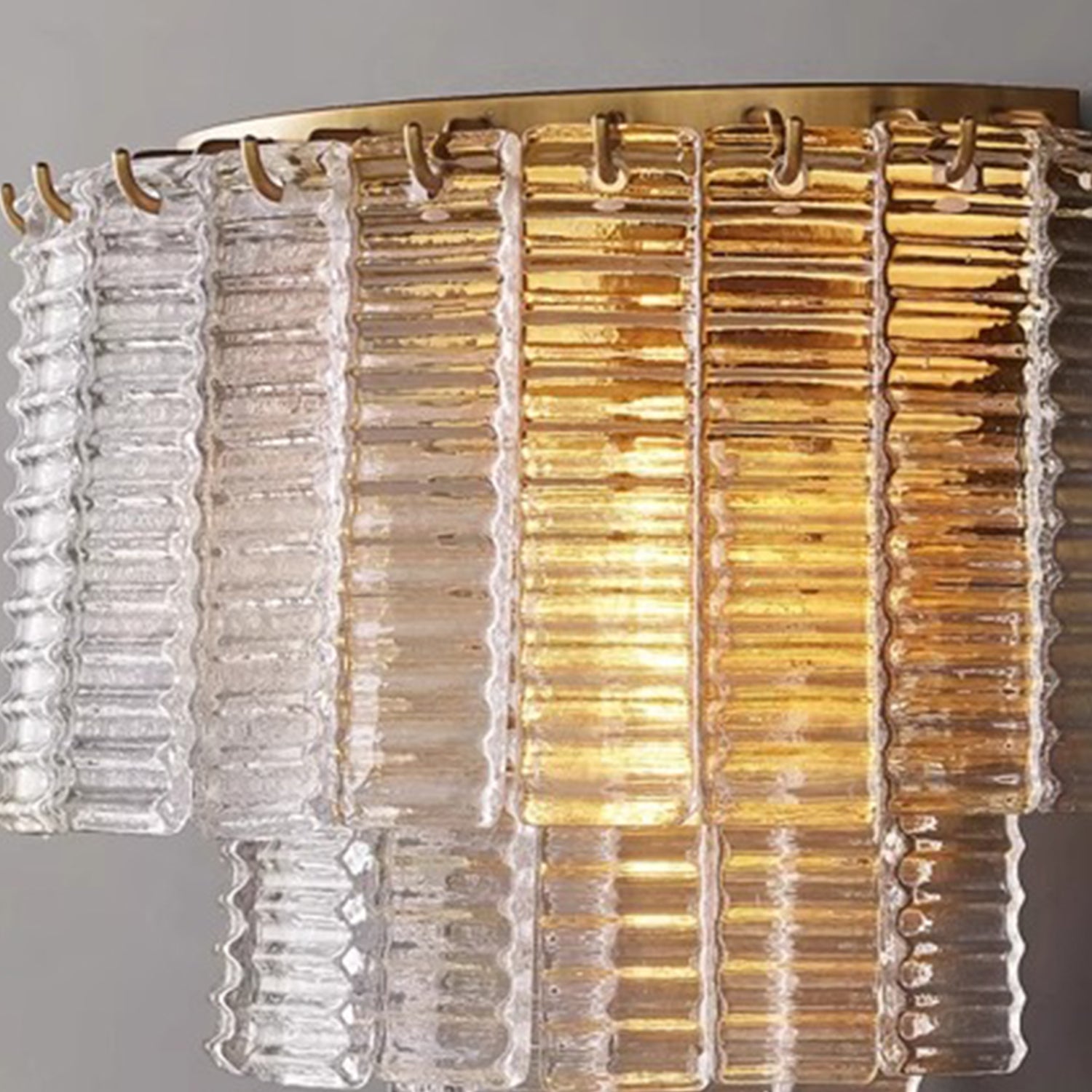 3-tier Clear & Smoke Ridged Glass Sirene Collection LED Wall Light Fixtures Wide 17"