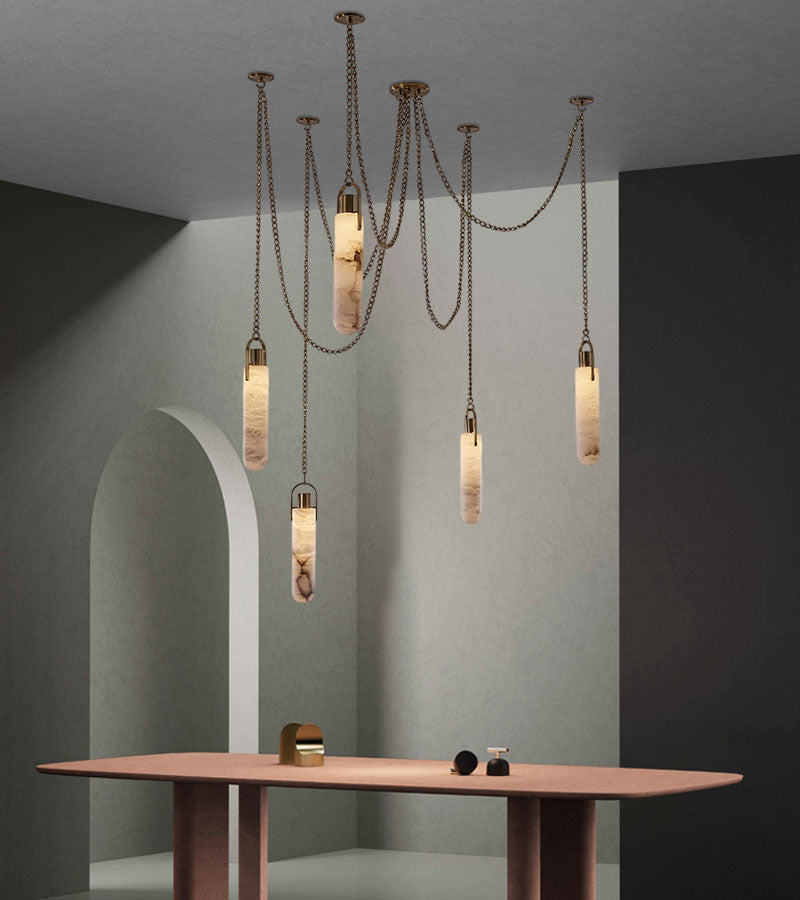 5-Light Cluster Brass Alabaster Ceiling Pendant Chain Light Fixtures for living room entrances
