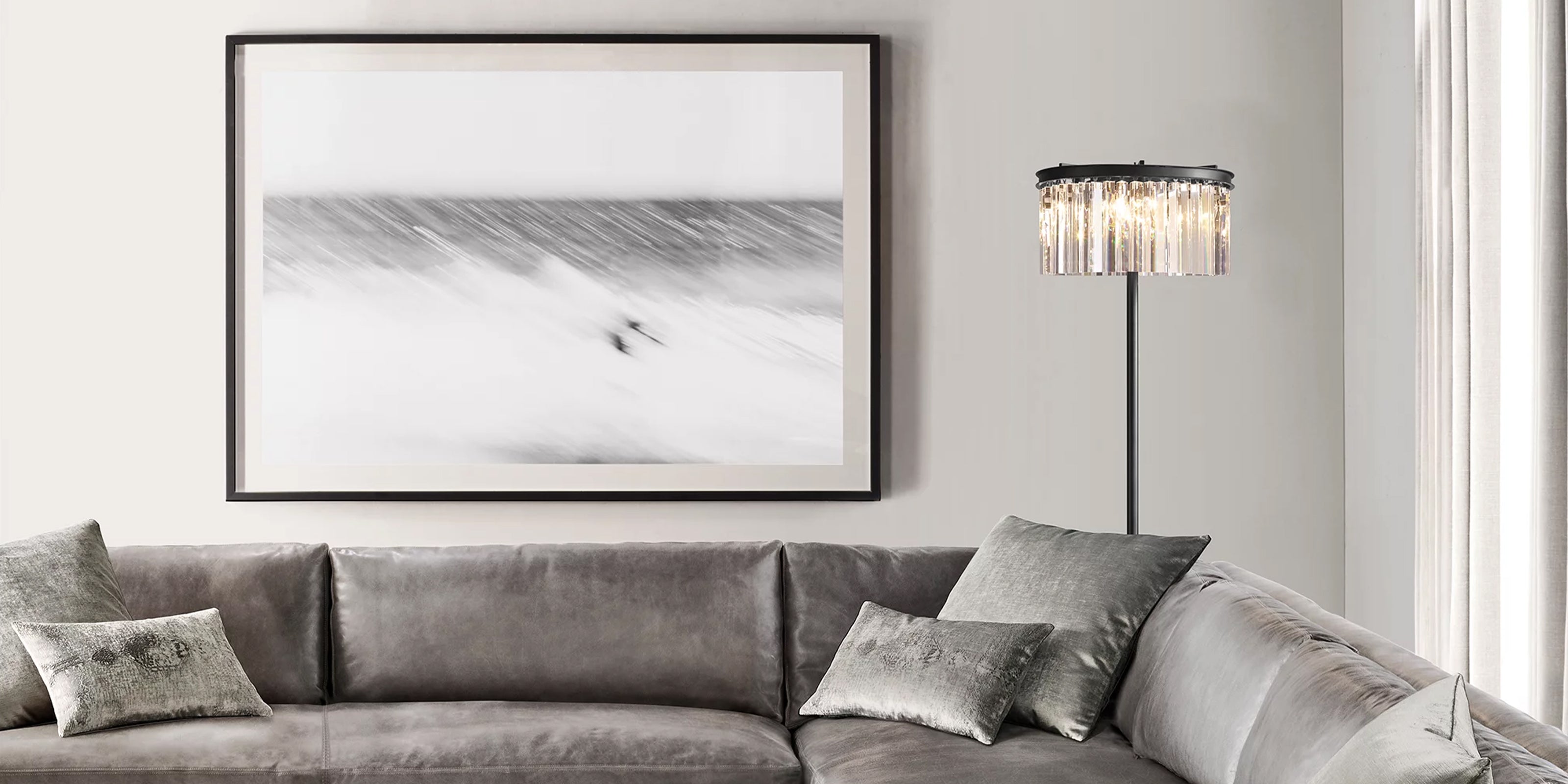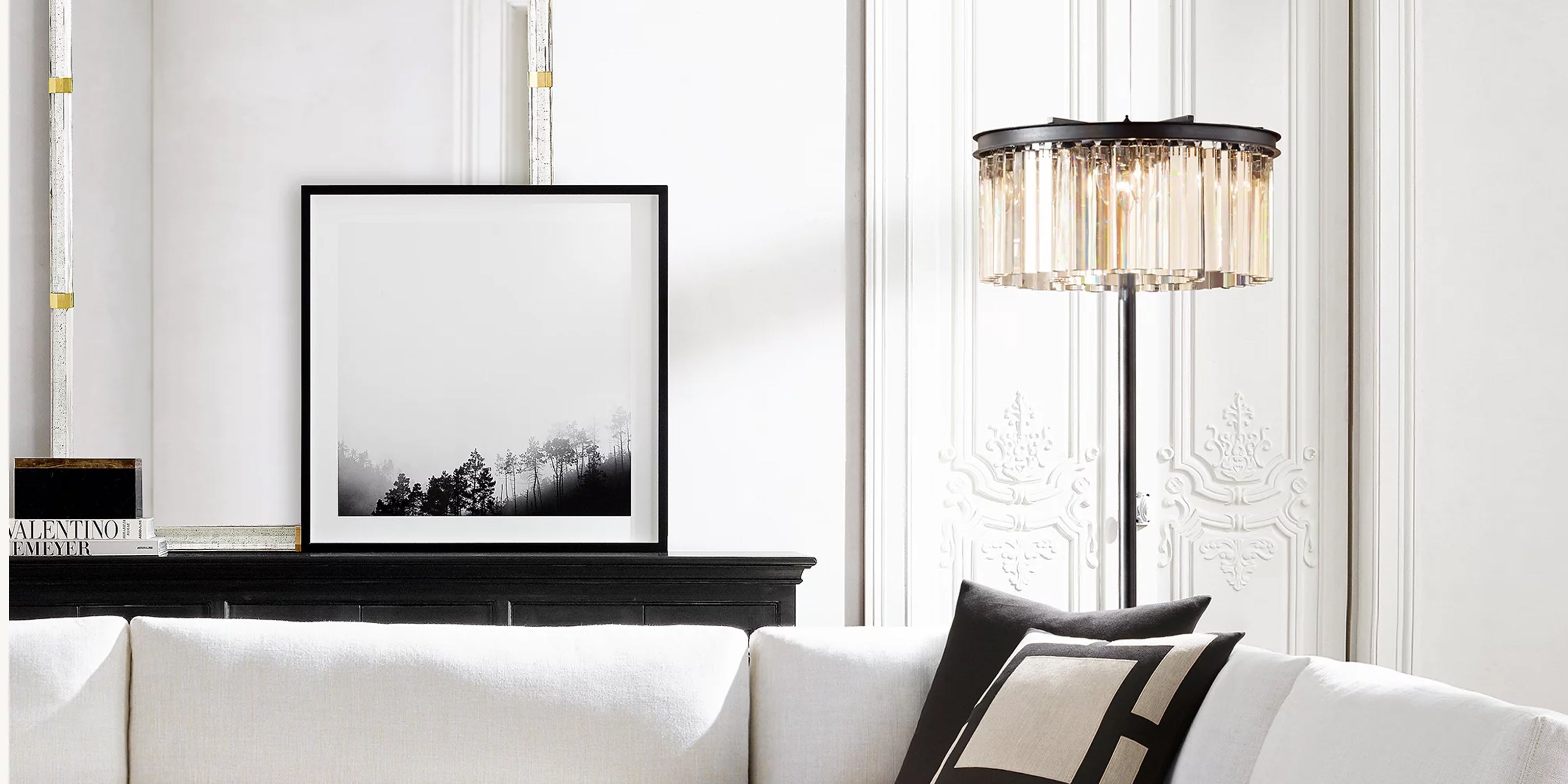 The Art Deco style born in 1920s Paris is evident in the straight-and-curved lines of our elegant lighting. Its optical-quality prisms hang in sparkling harmony from an iron frame.