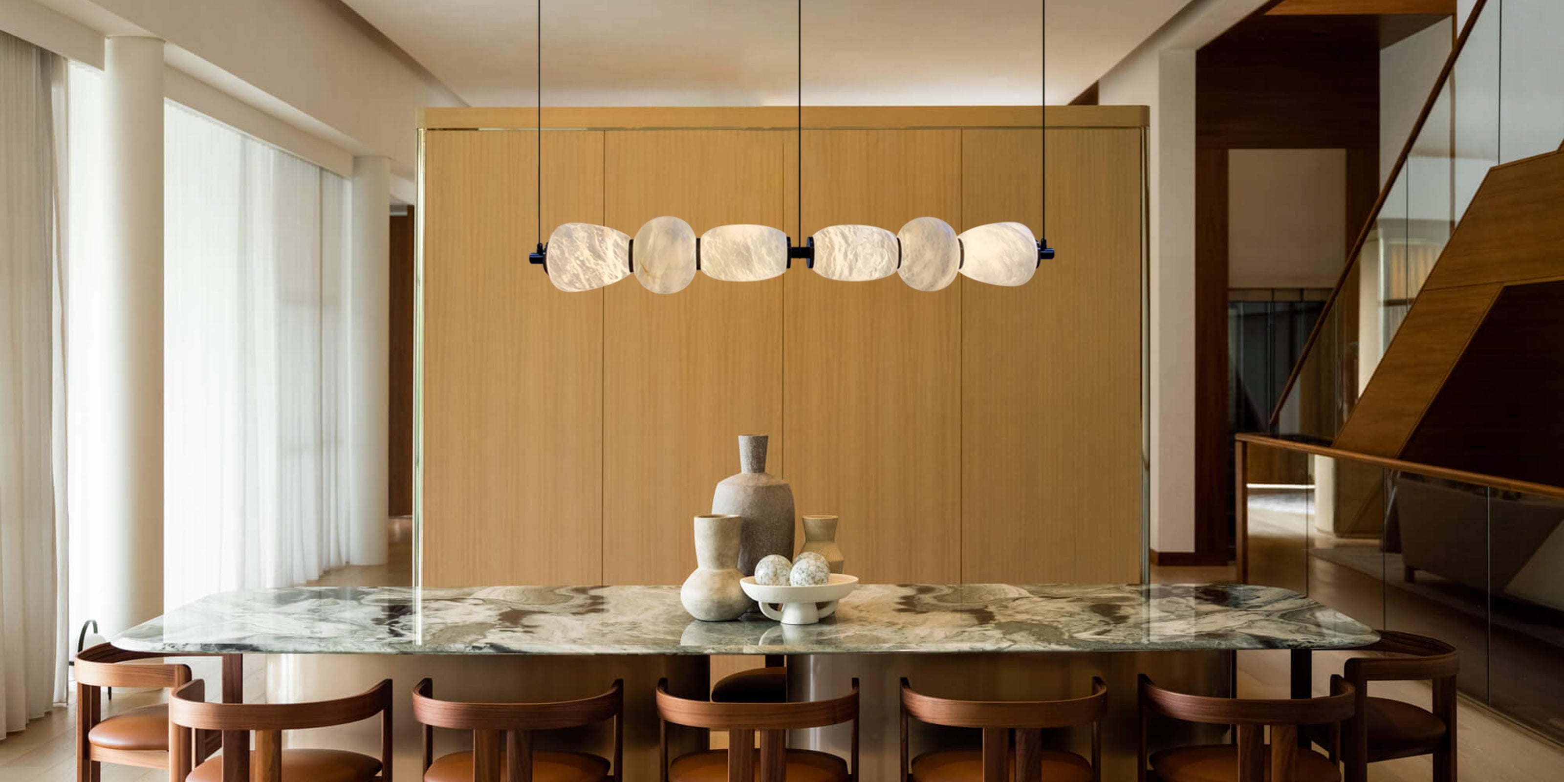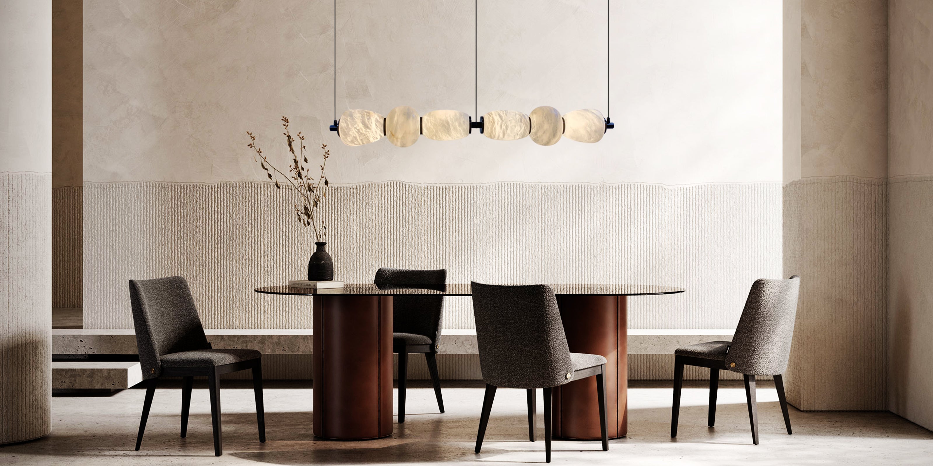 Alabaster Natural Stone Pendant light fixtures are exceptional. Each creation is a unique living work, arising from the direct cut of the sculptor.