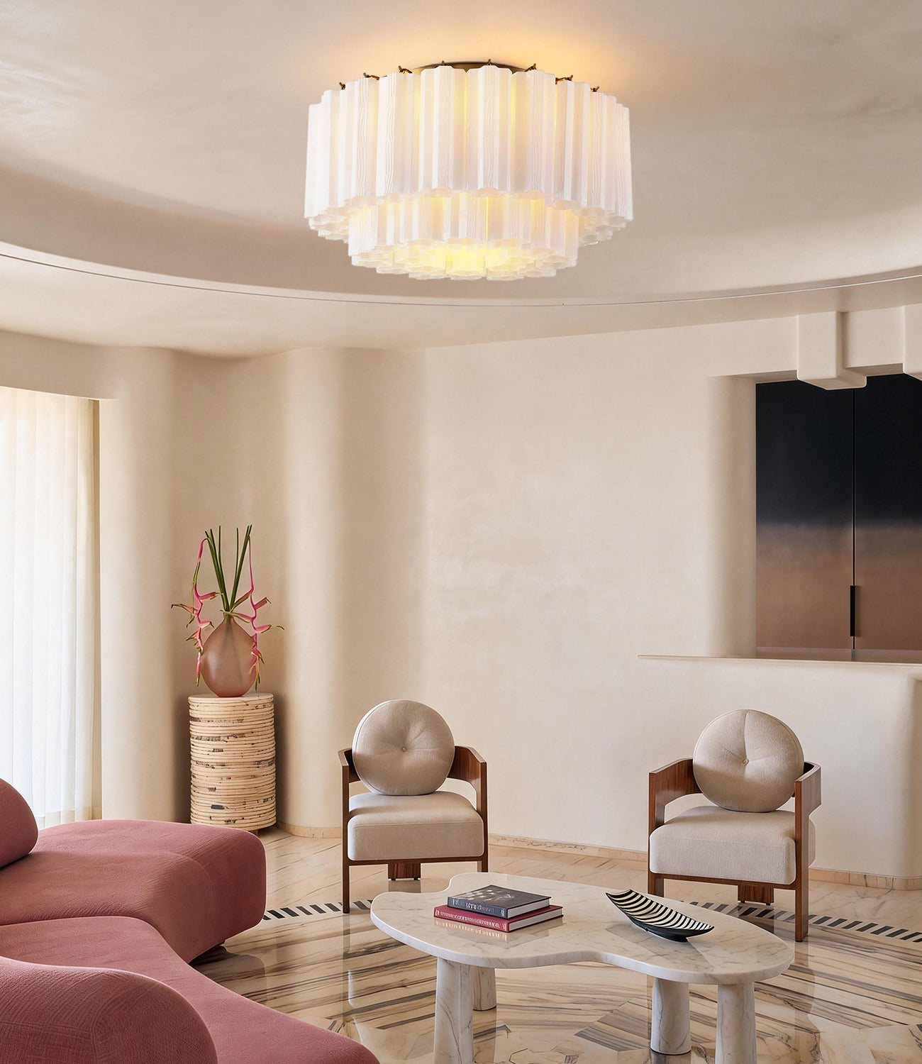 Featuring stunning layered glass panels that cascade gracefully, this fixture emits a soft, diffused light while adding a playful yet sophisticated touch to any room.