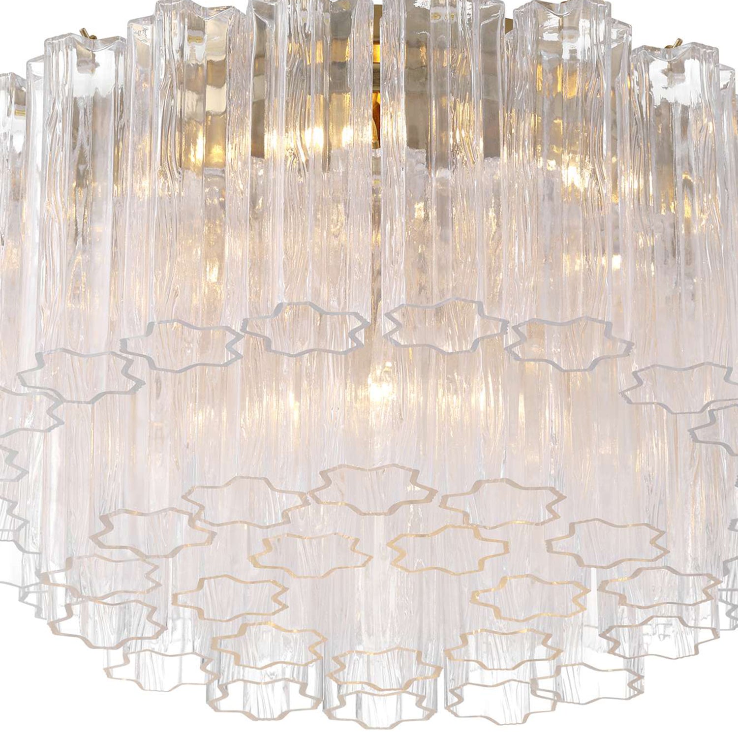 This fixture showcases hand-blown Murano glass tubes, complemented by elegant gold accents that underscore its refined style.