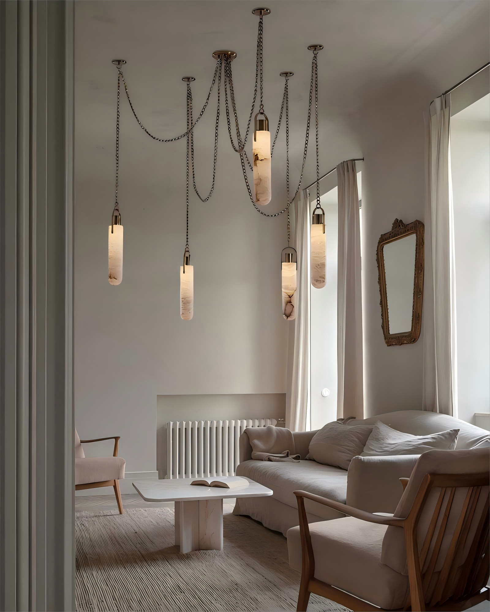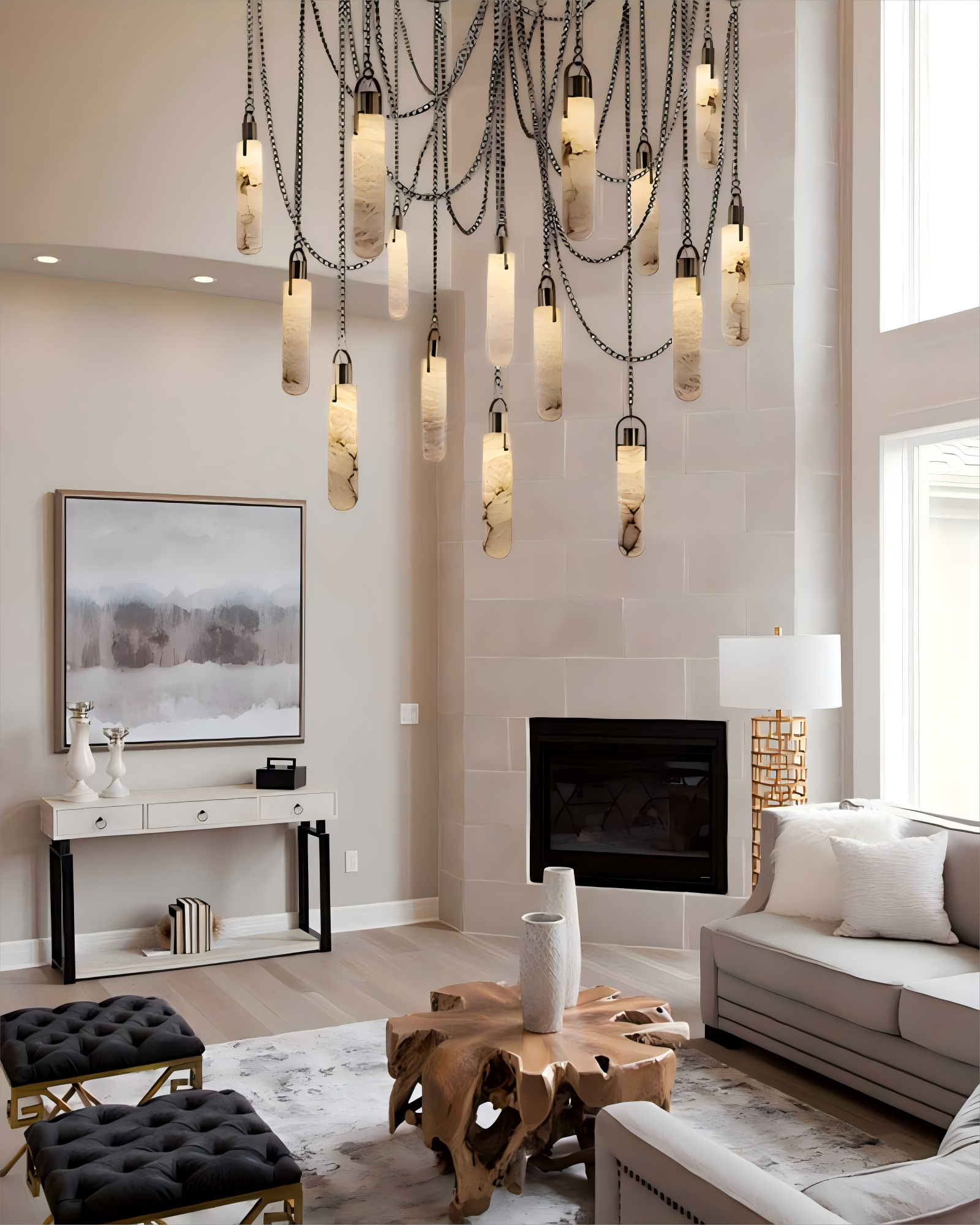 The Alabaster Decor Chandelier is a fusion of classic charm and modern aesthetics, making it the perfect centerpiece for dining rooms, entryways, or living areas. With adjustable Chain let's make new in style.