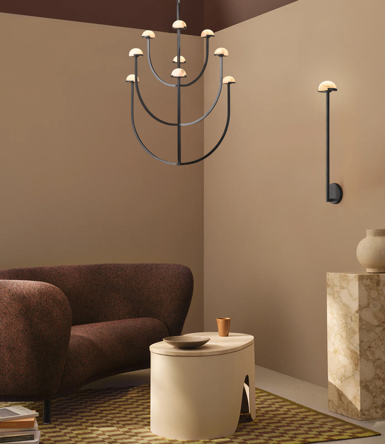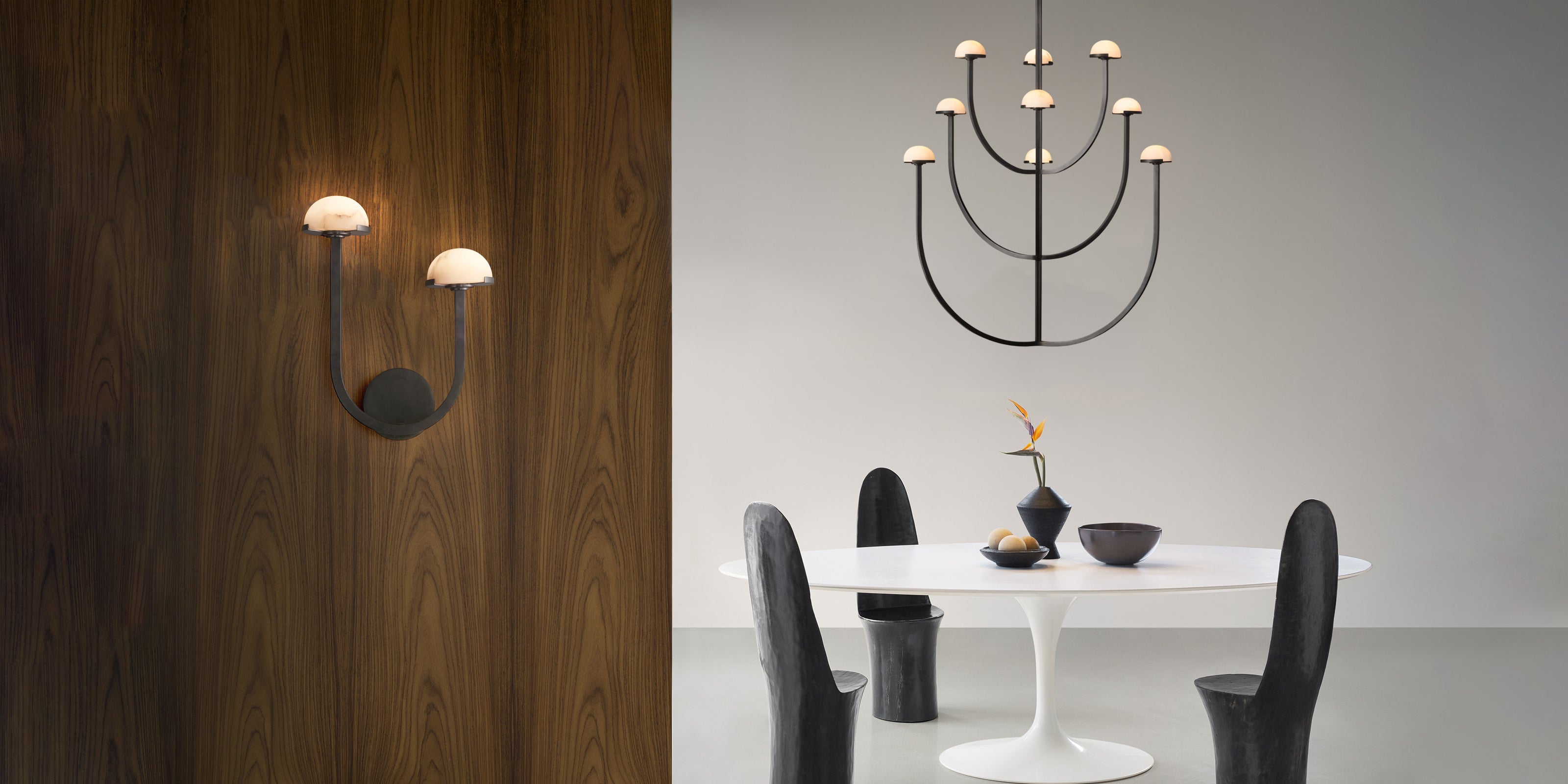 Ultra-modern yet warm and welcoming, the Pedra series showcases elegant metal forms accented by the natural beauty and versatility of alabaster.