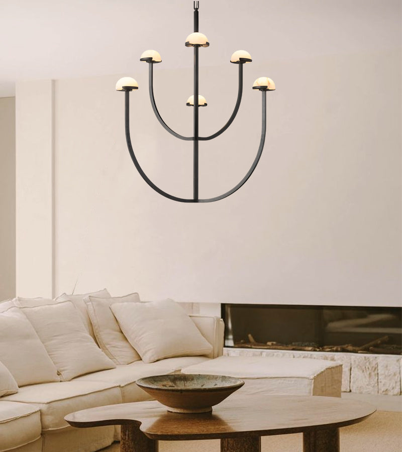 Pedra Tier Alabaster Chandelier Aged Brass/Black