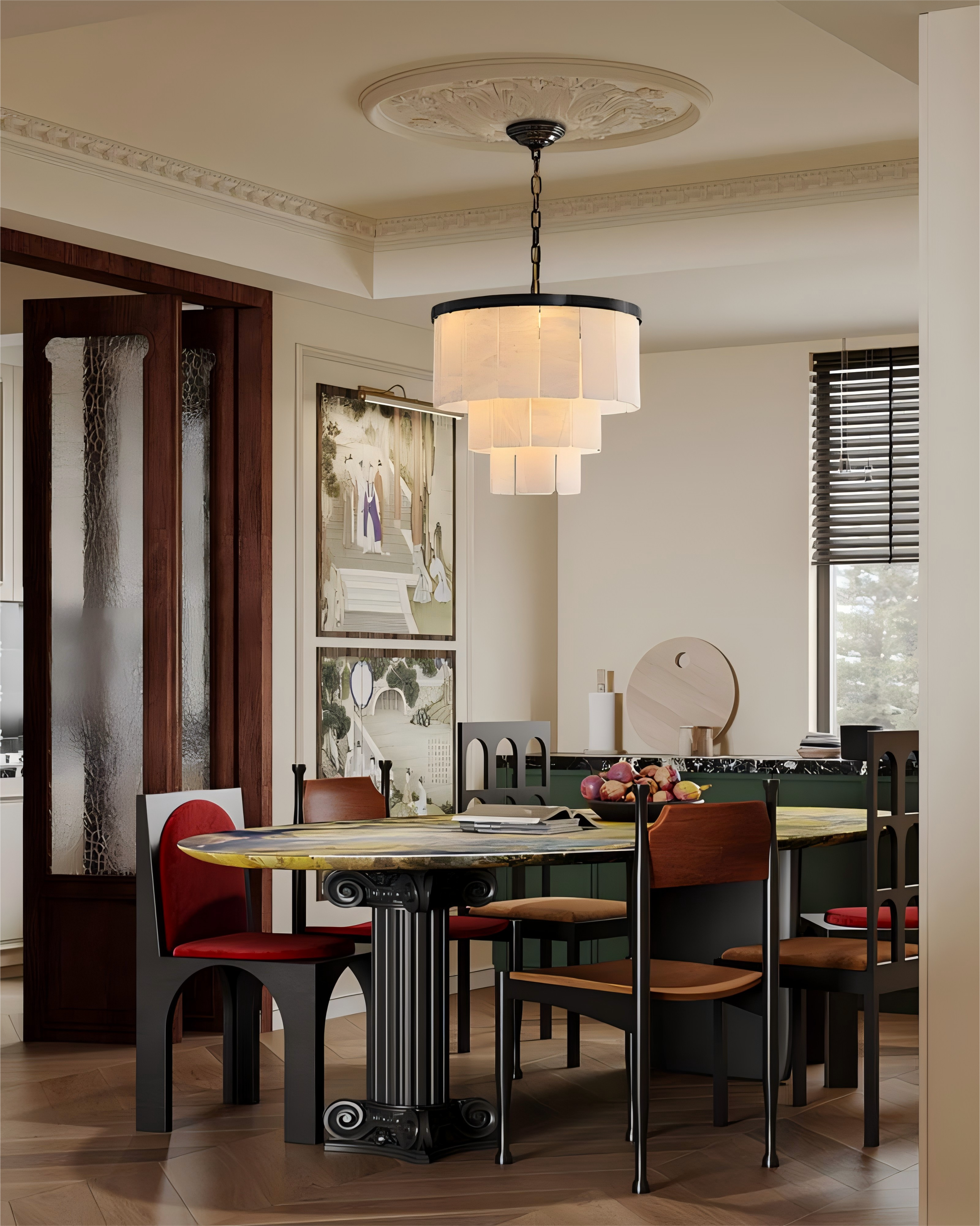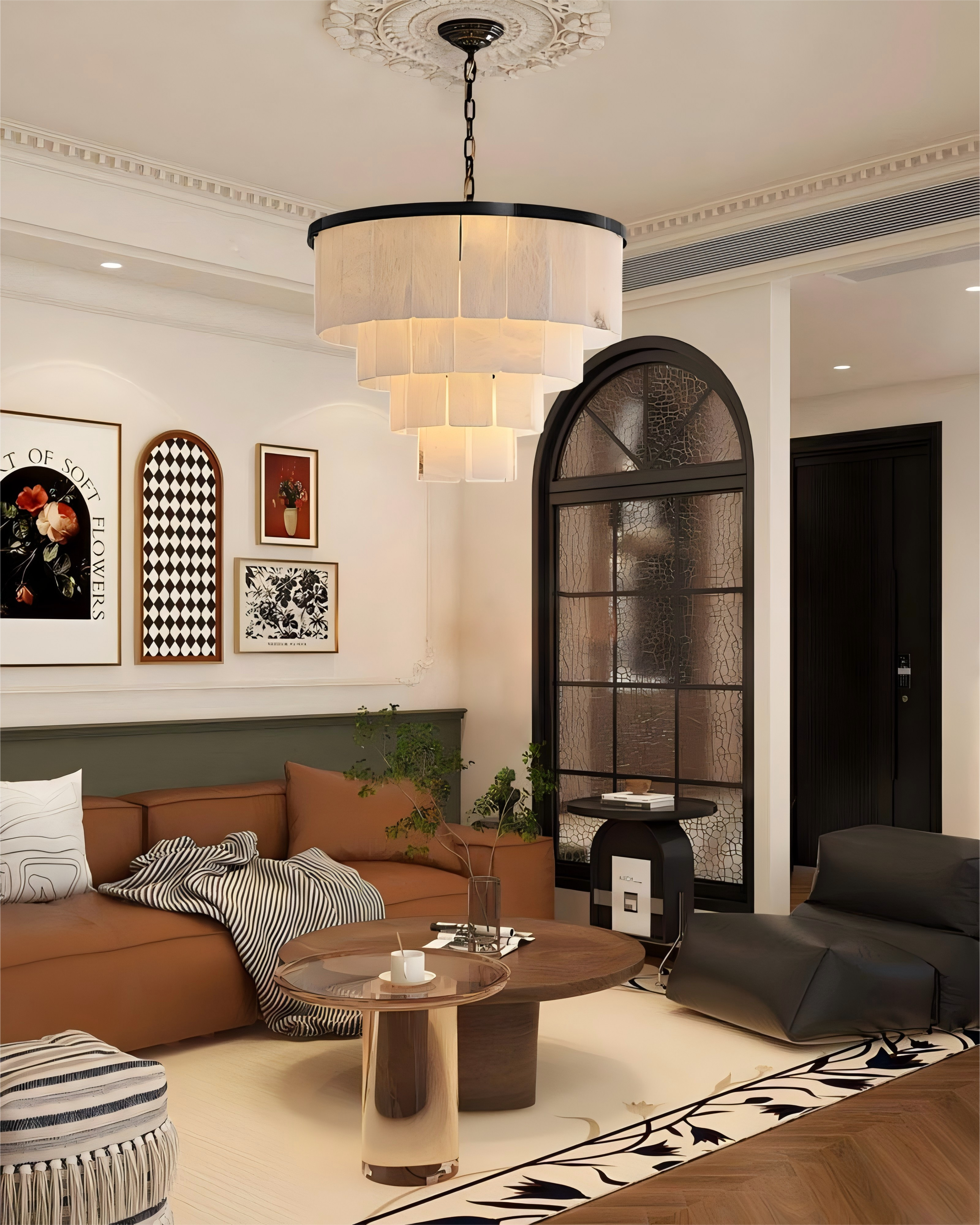 Alabaster Tier Round/Rectangular Chandelier Plated Gold&Black Stain for living room