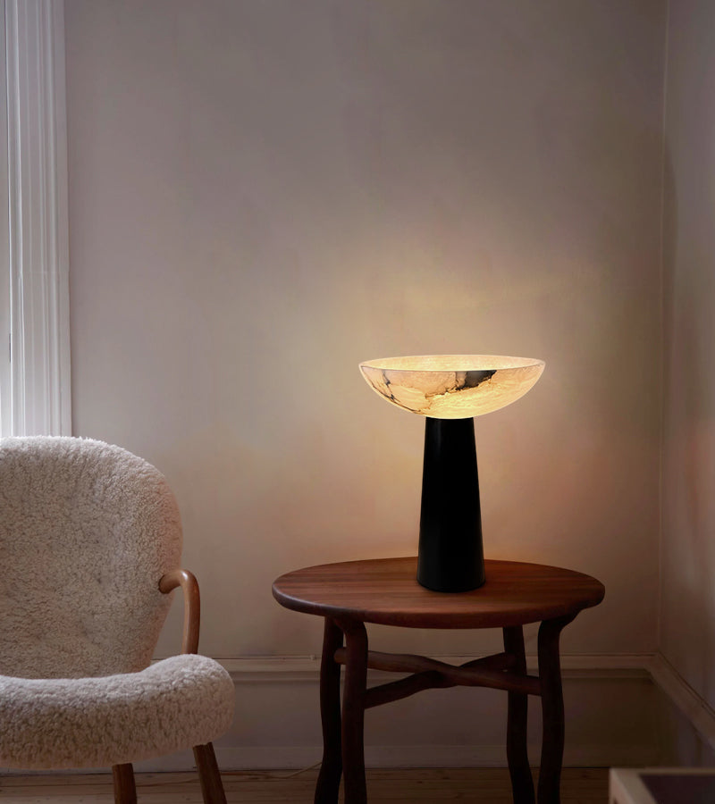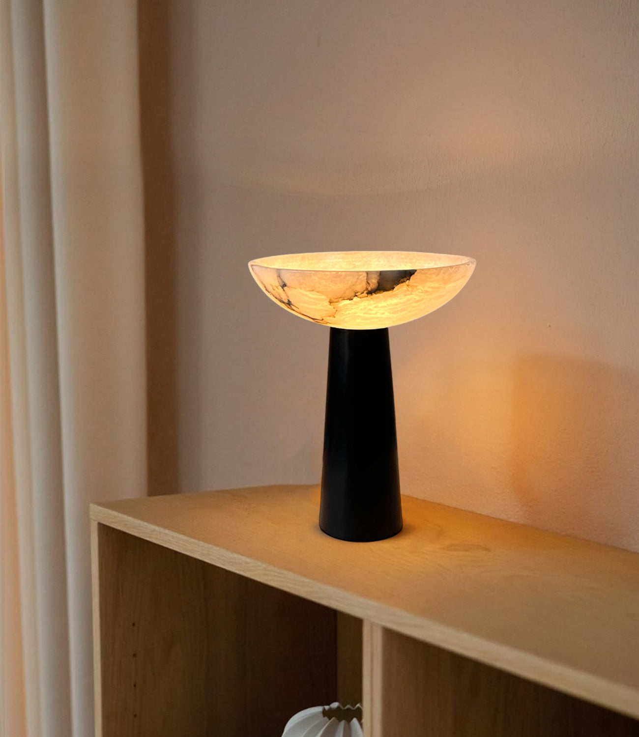 Aura Alabaster Bowl Table Lamp with Conical Base for bedroom