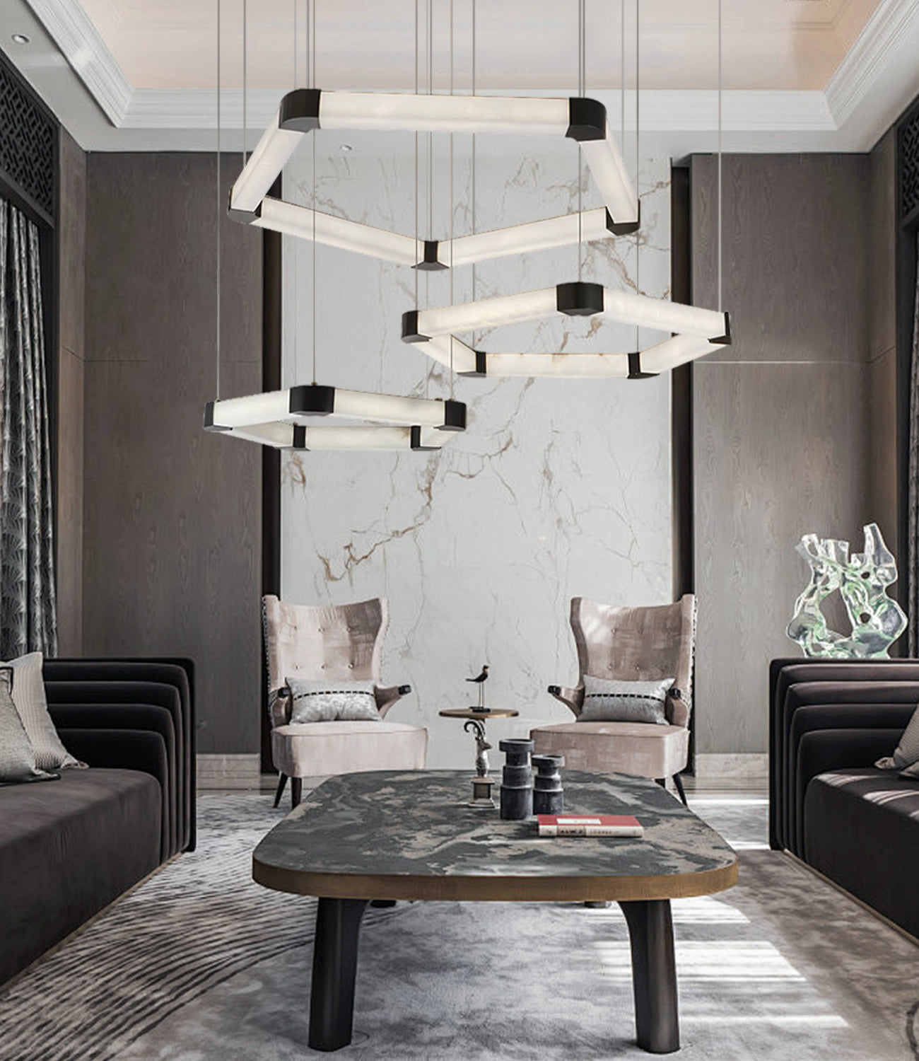 Stainless Polygonal Alabaster Chandelier