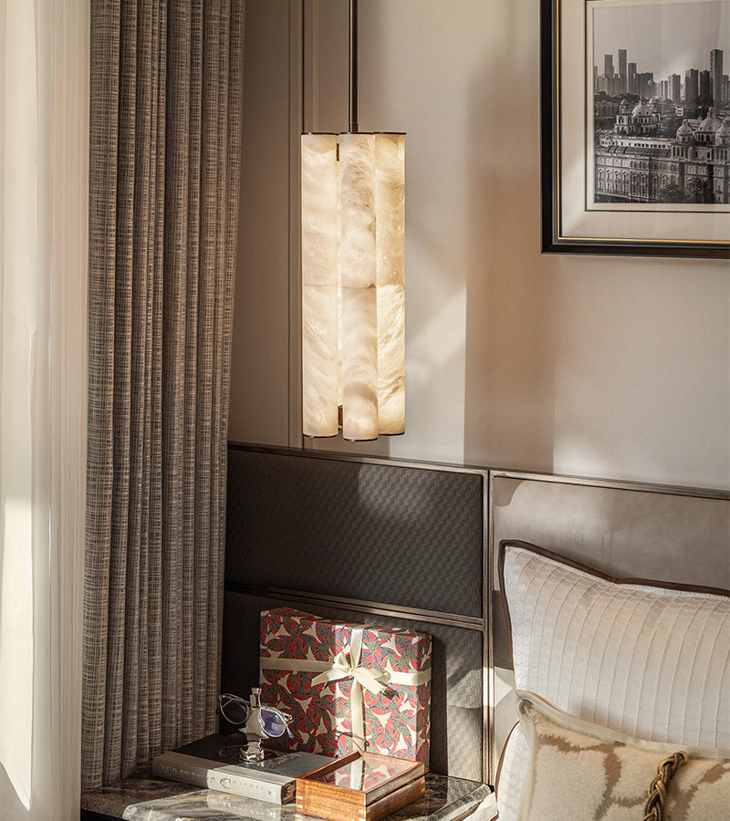A sculptural pendant handcrafted fromsolid marble, designed to elevate your space with soft, ambient LED lighting. Designed for indoor use, its cylindrical form suits hallways, dining areas, orrefined modern interiors. Each piece is handcrafted, meaning no two are alike, ensuring aone-of-a-kind presence in your home.
