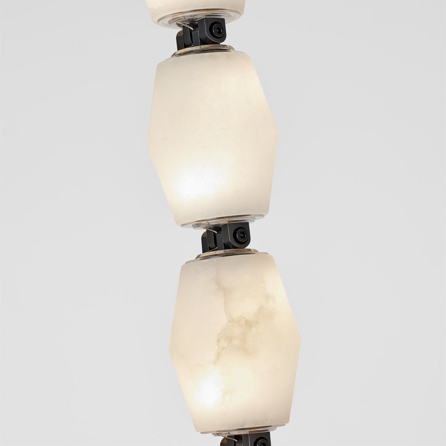 Elevate your space with the Clairval Alabaster Chandelier. A true masterpiece of luxury lighting, it features solid faceted Alabaster glass meticulously crafted in the Czech Republic, seamlessly joined by custom solid brass connectors.