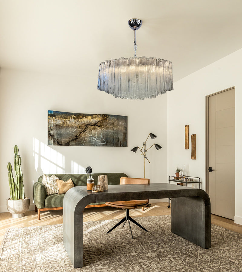 Multi-tiered layers of glass tubes create a stunning visual cascade, offering mesmerizing depth and texture. More than mere lighting, it's a sculptural centerpiece destined to command attention and elevate the atmosphere in your dining room, grand foyer, or stairwell.