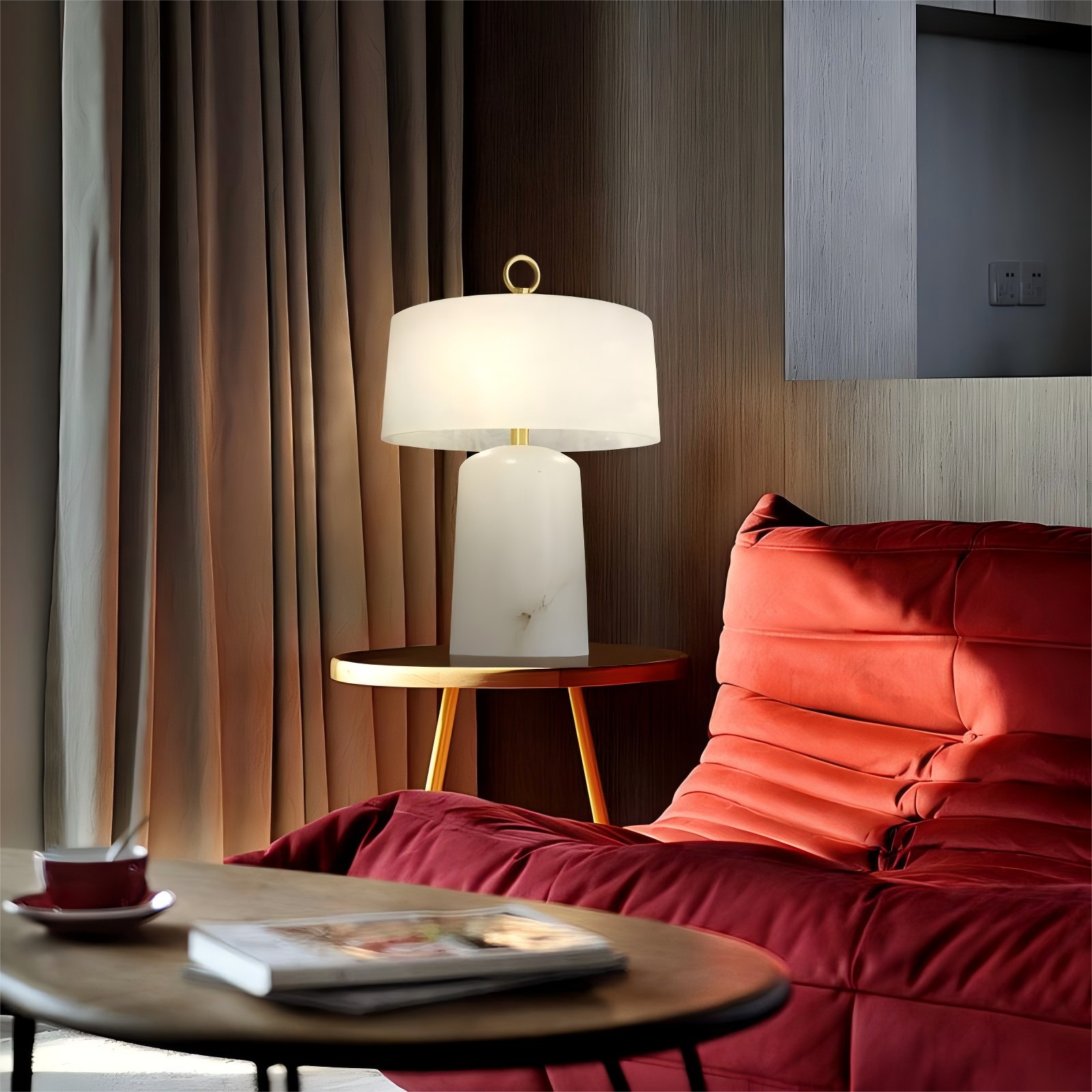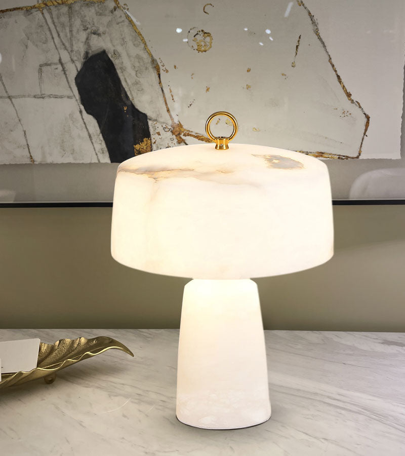 This alabaster table lamp is the perfect decorative piece for any home. Its marble gives it a timeless elegance and its vintage style gives it a unique charm. Perfect for sideboards and tables, enhance your home decor with this unique piece.