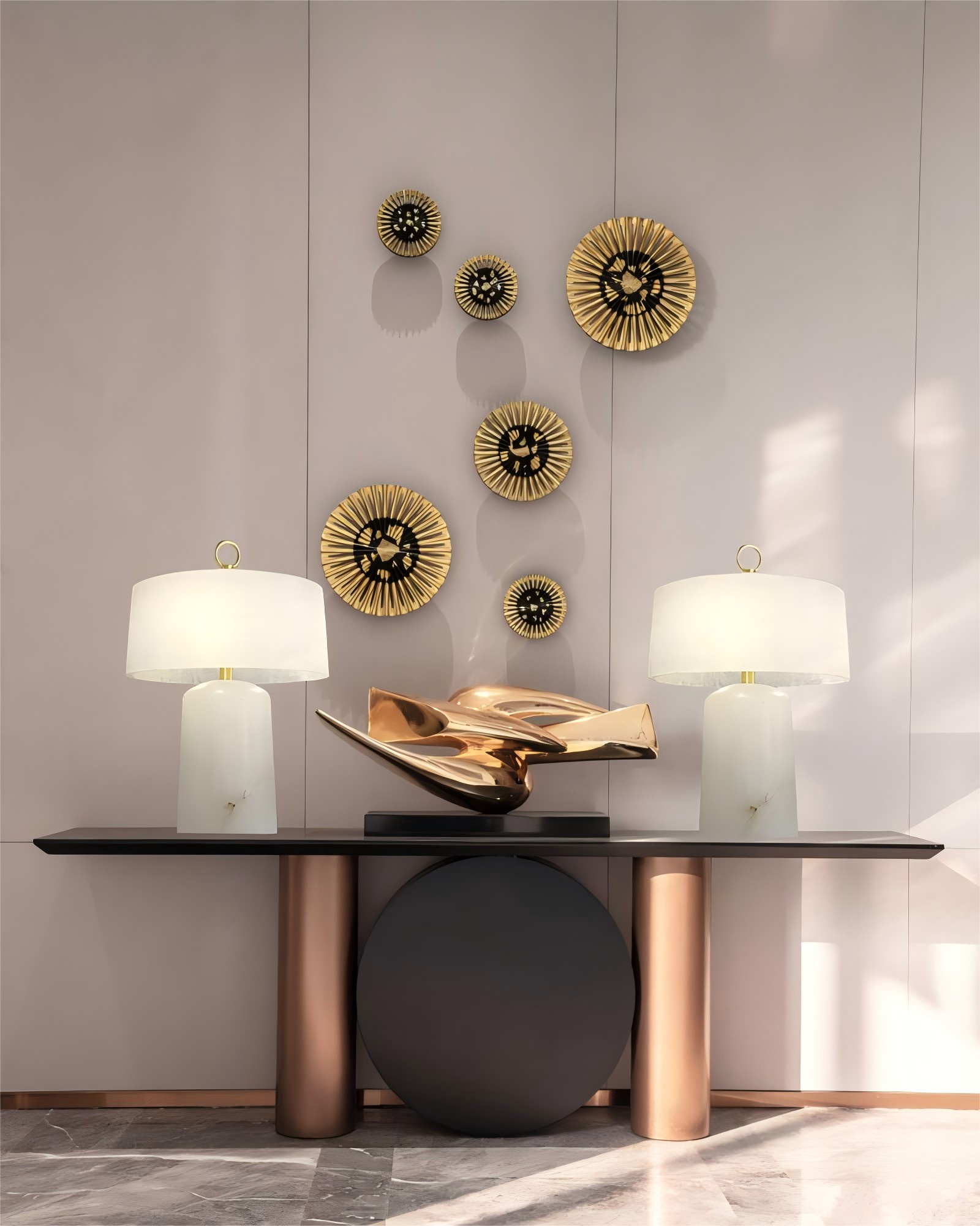 - Handcrafted Alabaster Shade: Unique natural veining, 30cm diameter.