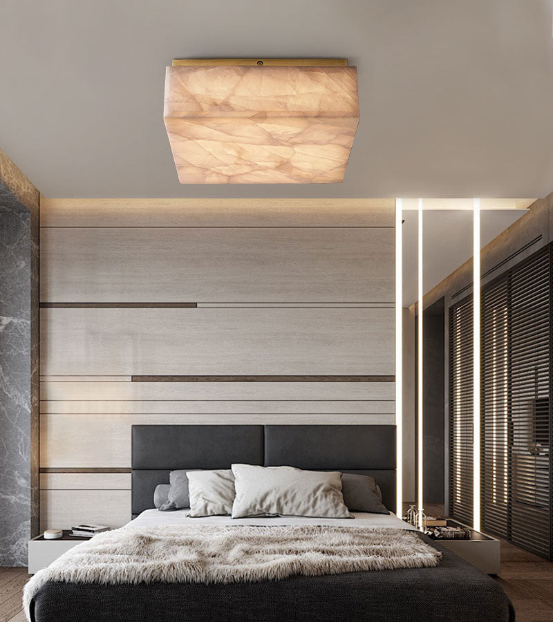 This series flush ceiling light has been crafted from turned white alabaster plate, lifting your lighting scheme with a soft glow. Its chunky fixture ceiling board is finished with brass details. A one-of-a-kind design for every room in the home, including the bedroom,villa,corridor,hotel and other places.