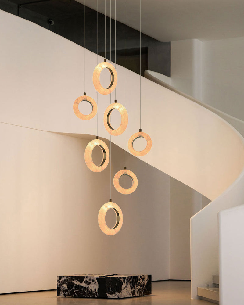 Elegant Stairwell Cluster Lighting LED Alabaste Circular Adjustable Pendant Light Fixtures