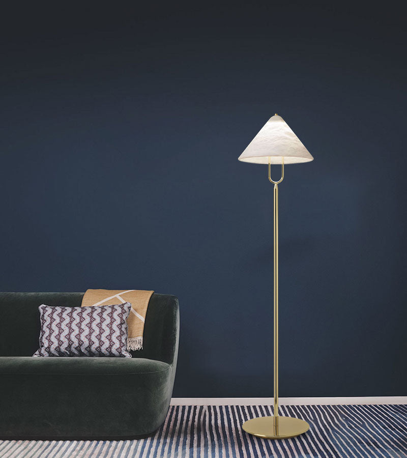 Softness, elegance and minimalism alabaster floor lamp.Combines two noble materials: iron and alabaster with conical shade.Its simple and contrast harmoniously with the heaviness of the stone.And structures made of electrolytic-bathed iron in polished brass finish. Show us the great warmth and spectacular look when light on.