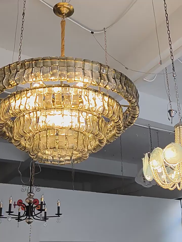 Textured, curved glass panels soften and scatter illumination, casting a warm, ethereal glow in any room.