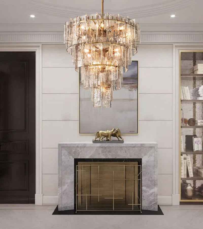 Gordes Series Architectural Chandelier | Interlocking Planes Corrugated sculptural glass, Transparent and smoky glass finish for Entryways, dining areas, and lofts by LightsStory.