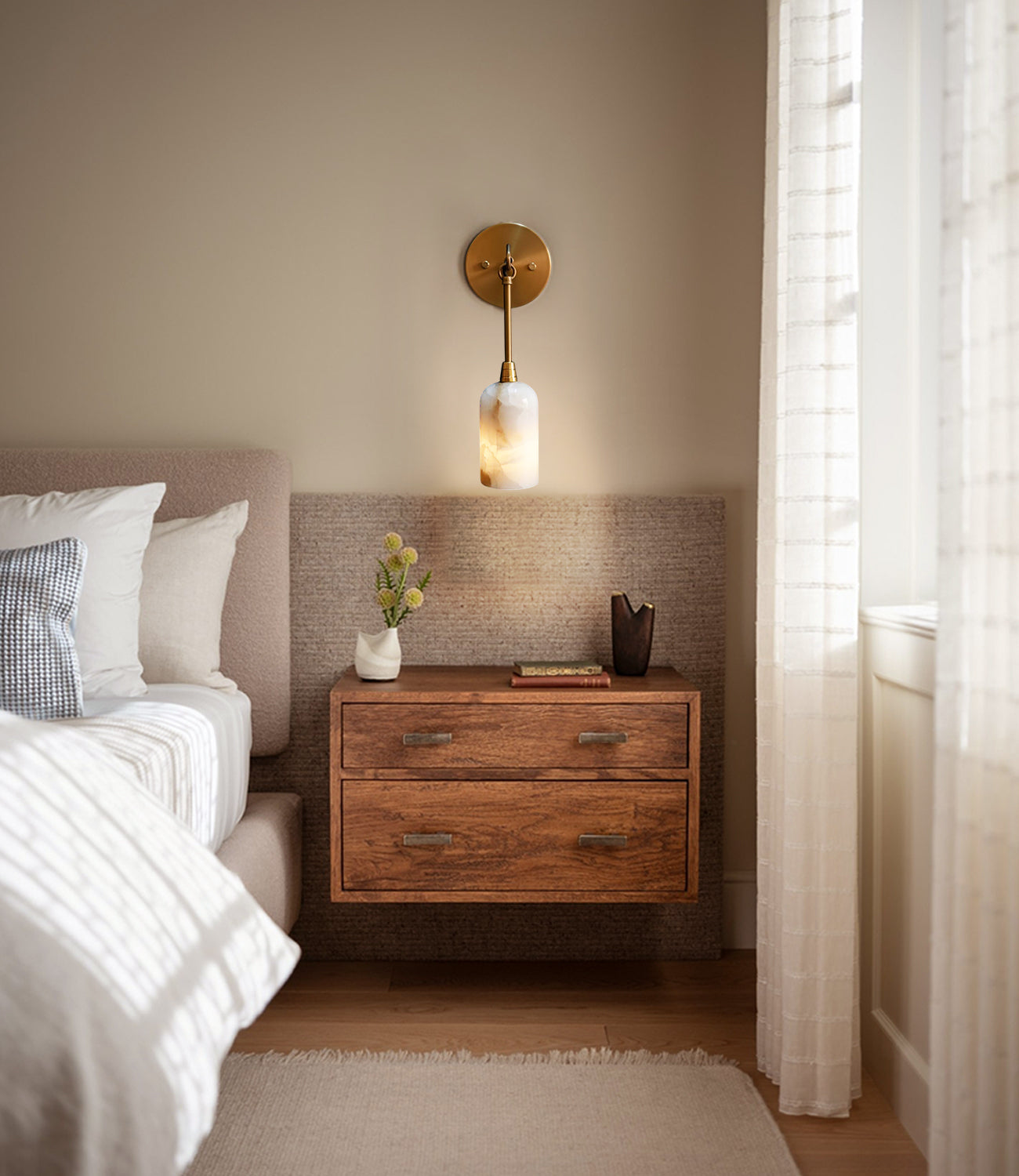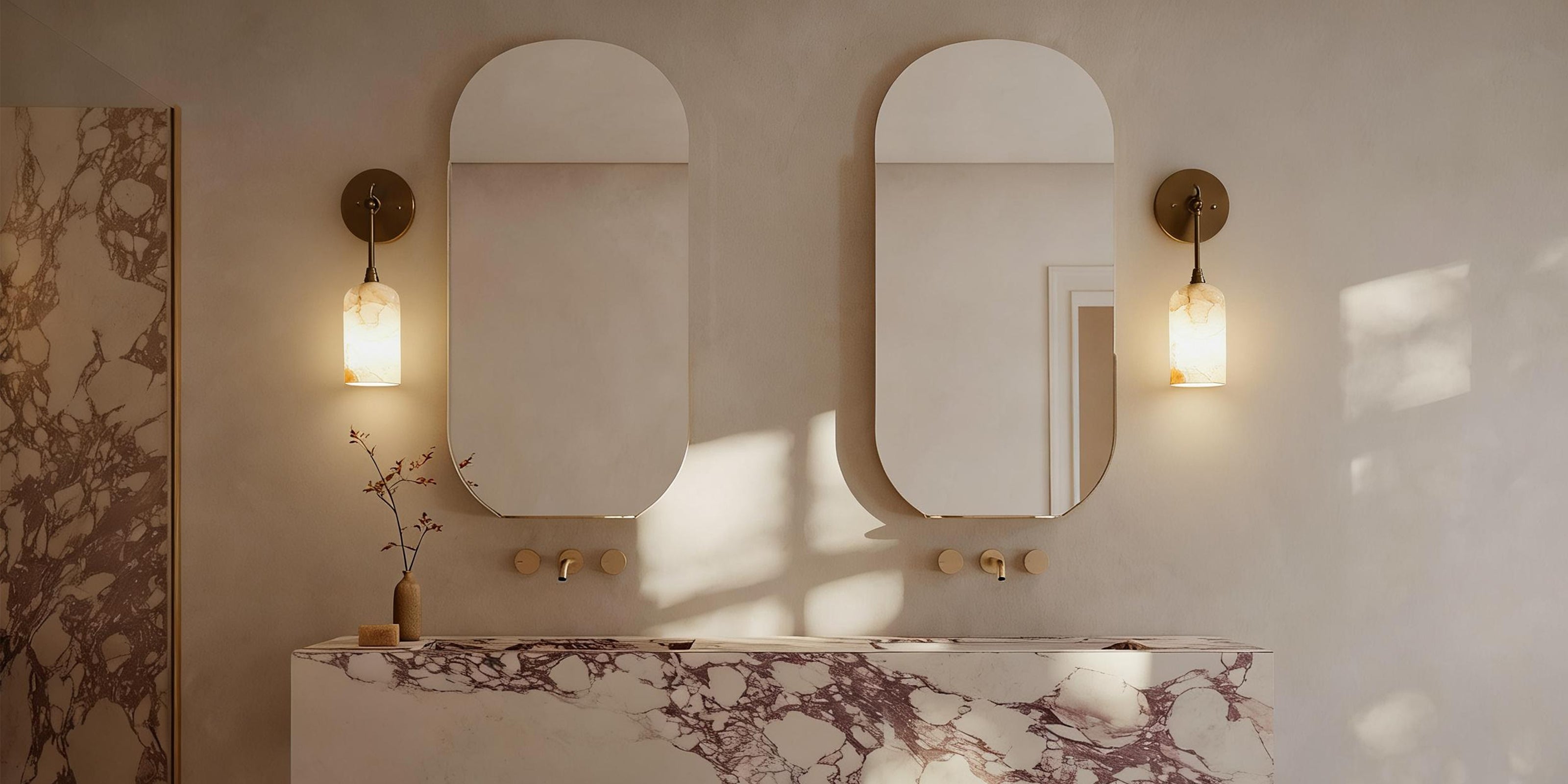 Graceful Alabaster & Brass Wall Sconce | Natural Marble Ambient Light | Mid-Century Modern Luxury Wall Lamp