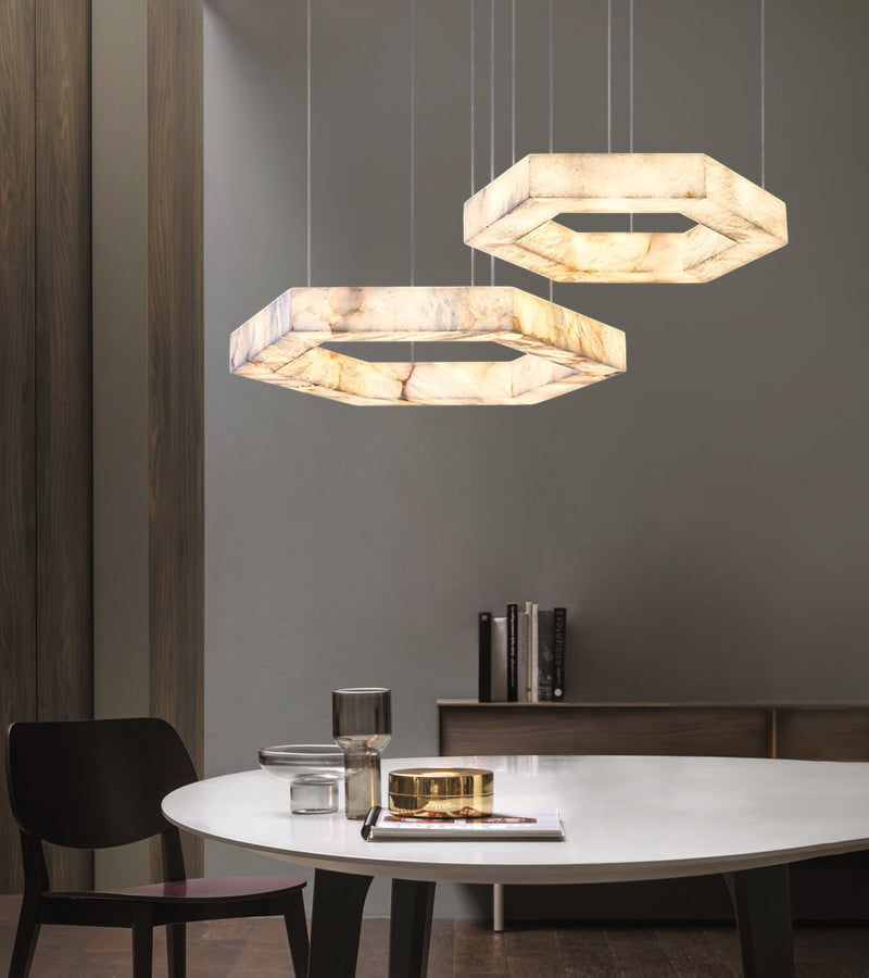 Triple Ring Hexagon Marble Pendant Lamp with stepless dimming,192W