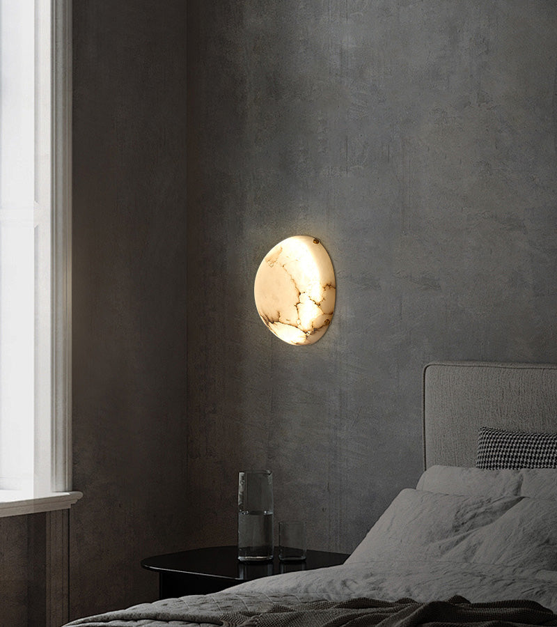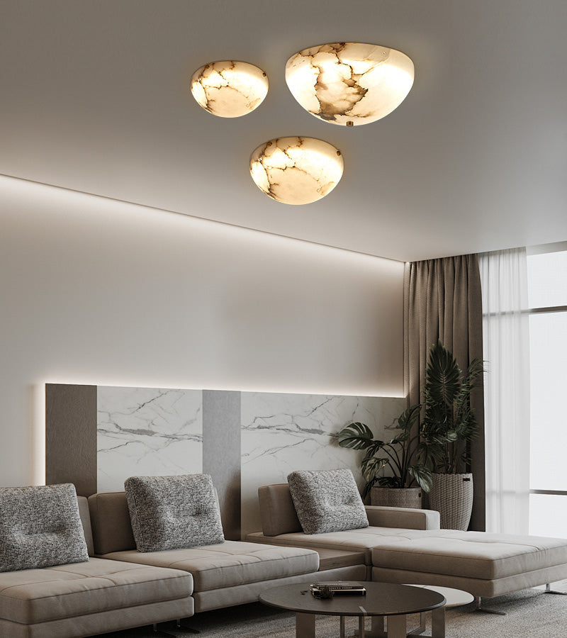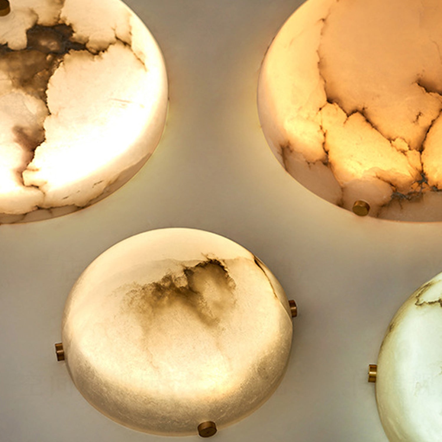 This alabaster marble lamp can be used as a ceiling lamp or a wall lamp, with built-in high-color lamp beads, the light is soft and uniform,provides the warmth and glow of genuine carved alabaster.