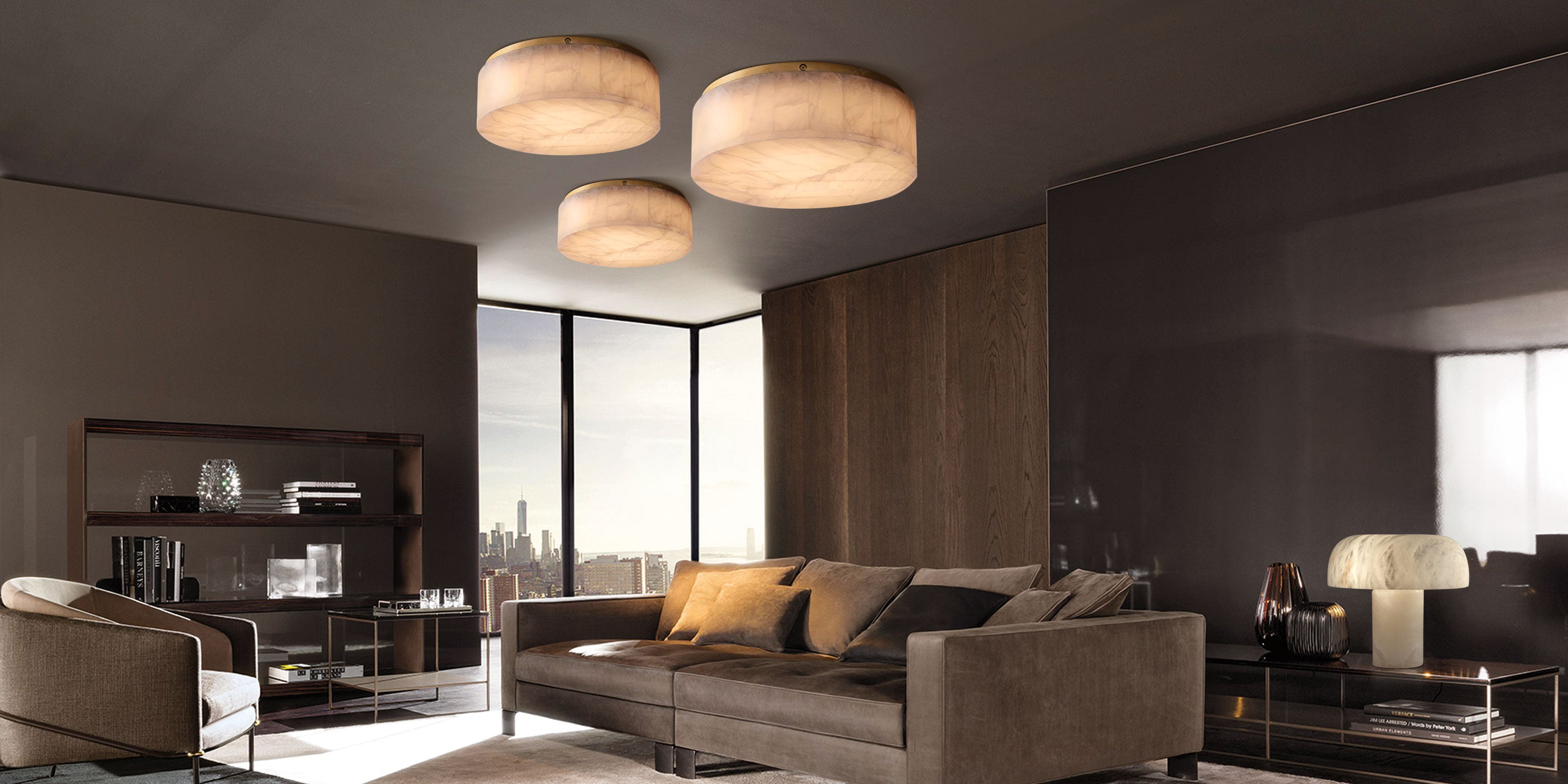 Surrounded in beautiful white alabaster, this series Flush Mount Ceiling Light from Visual Comfort Signature creates a wonderfully earthy elegance in your home. Whatever the round shape or square shape,all can make understated but sublime in a refined living space, glows with warmth.