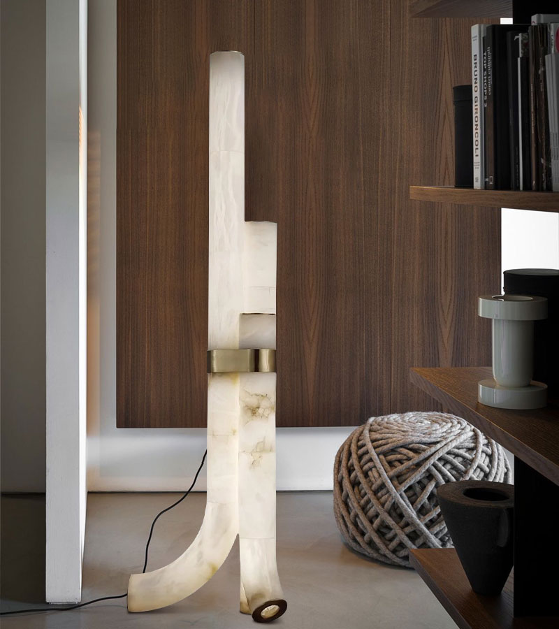 Natural Alabaster And Brass Led Floor Lamp