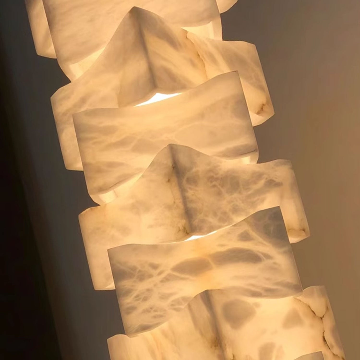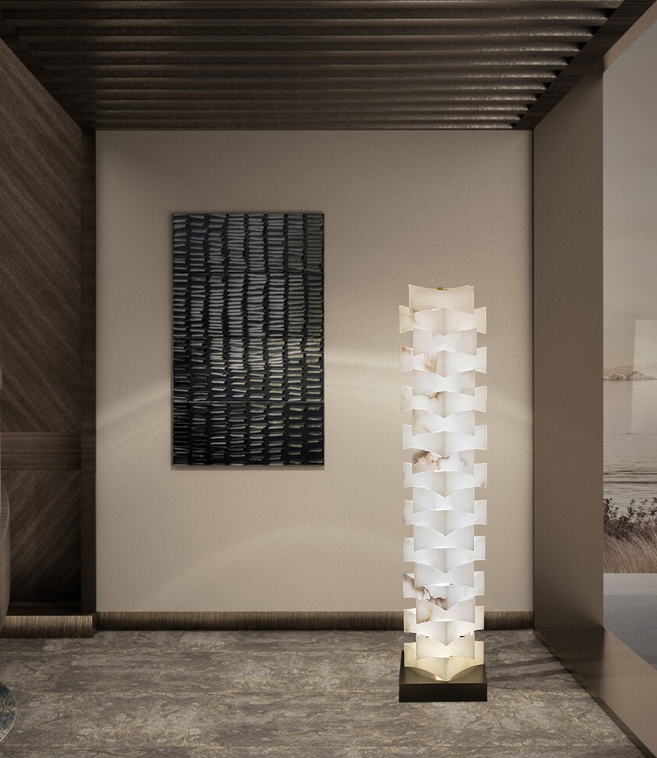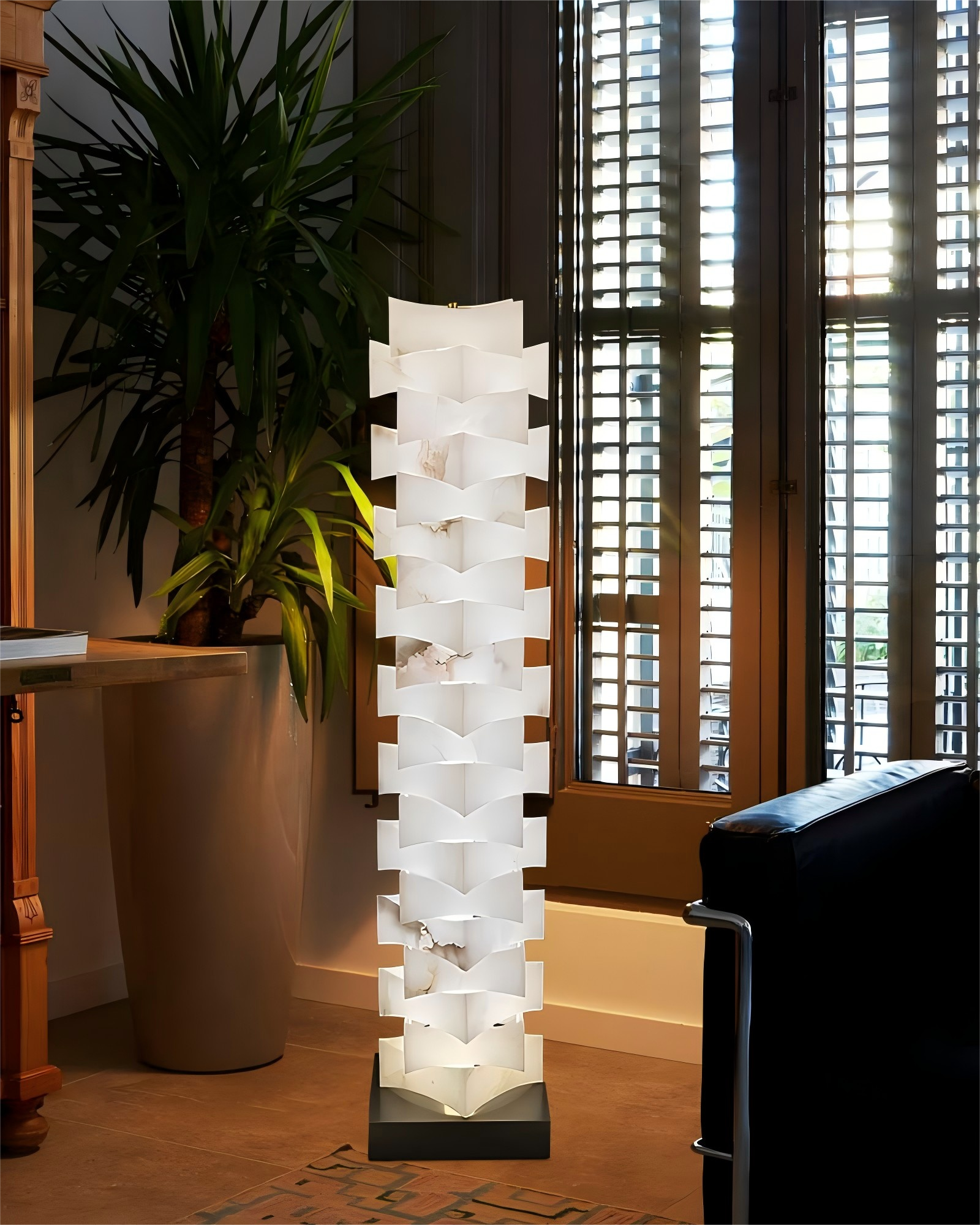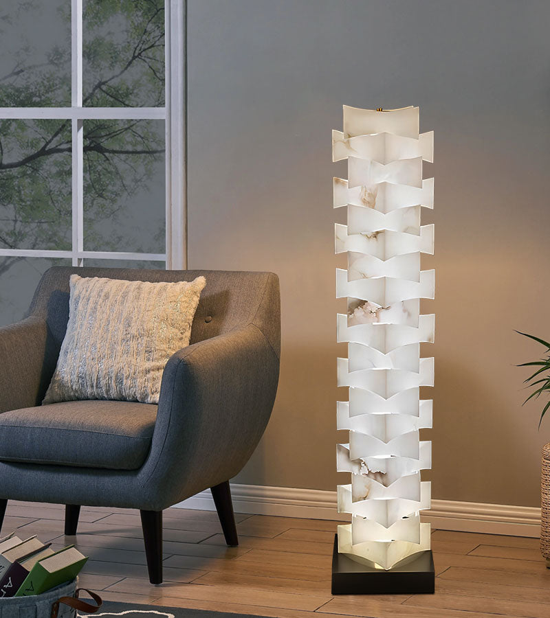 Stacked Laminated Alabaster Marble Square High Floor Lamp