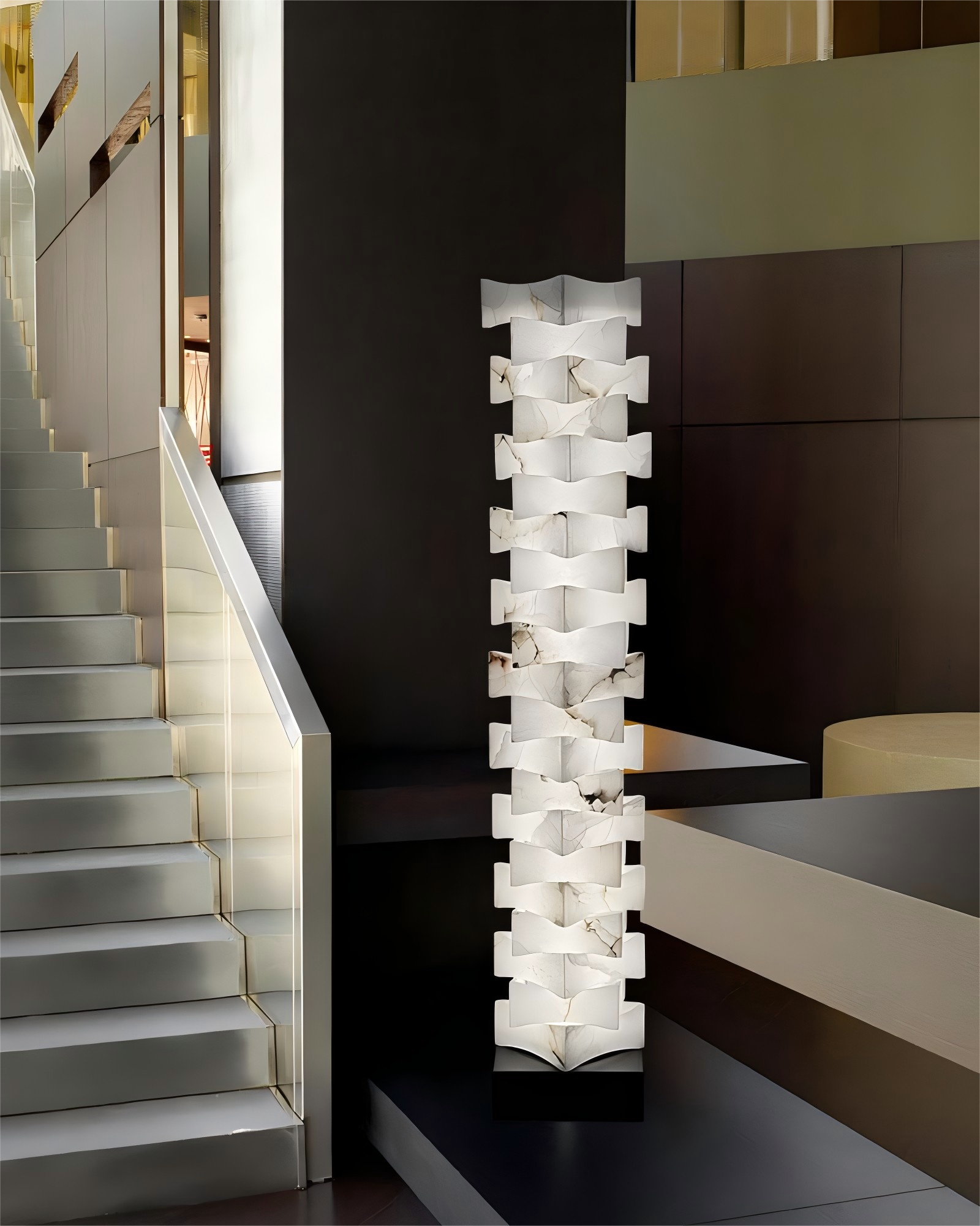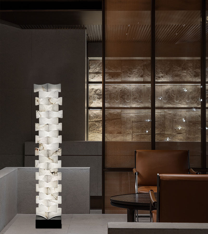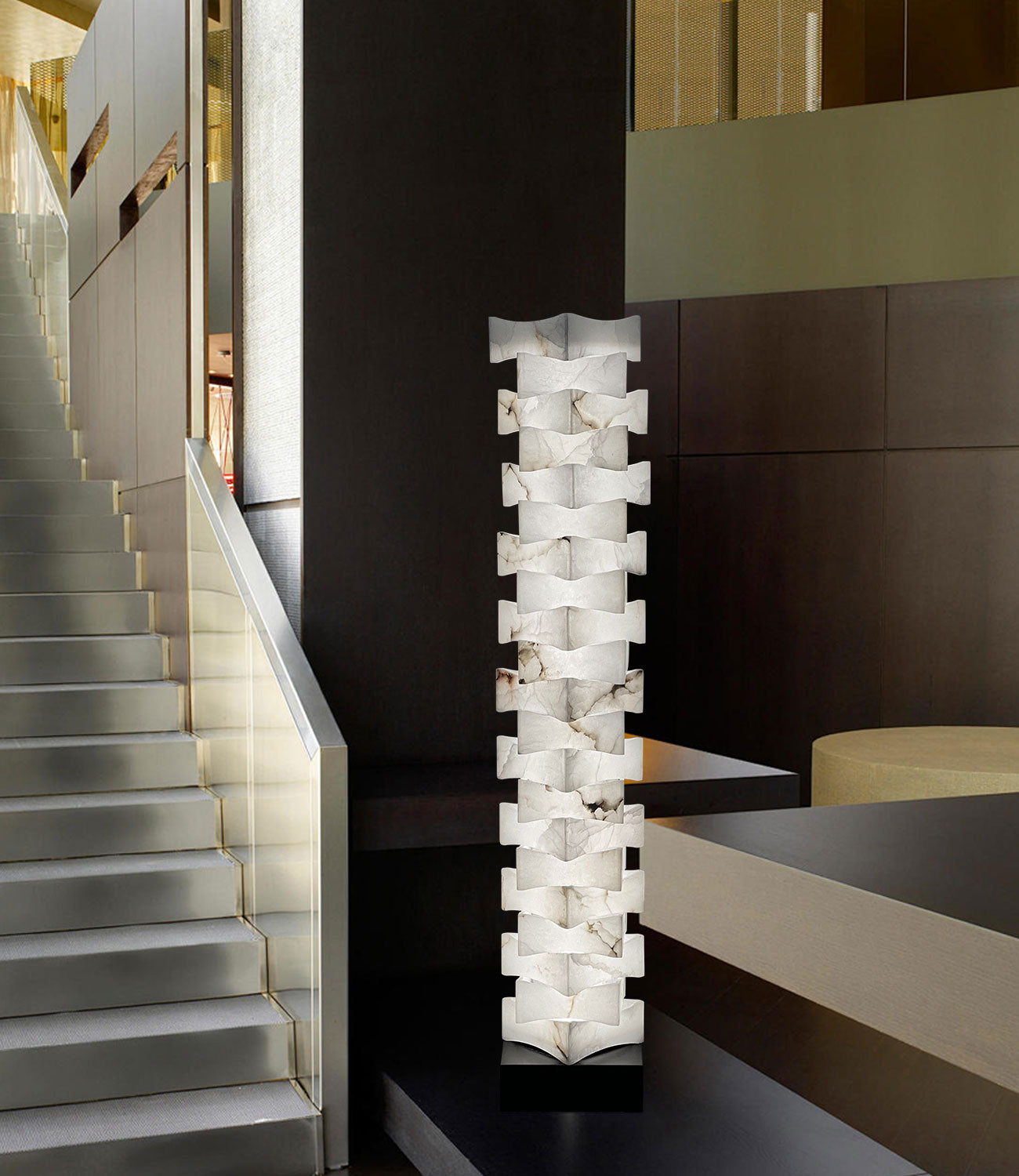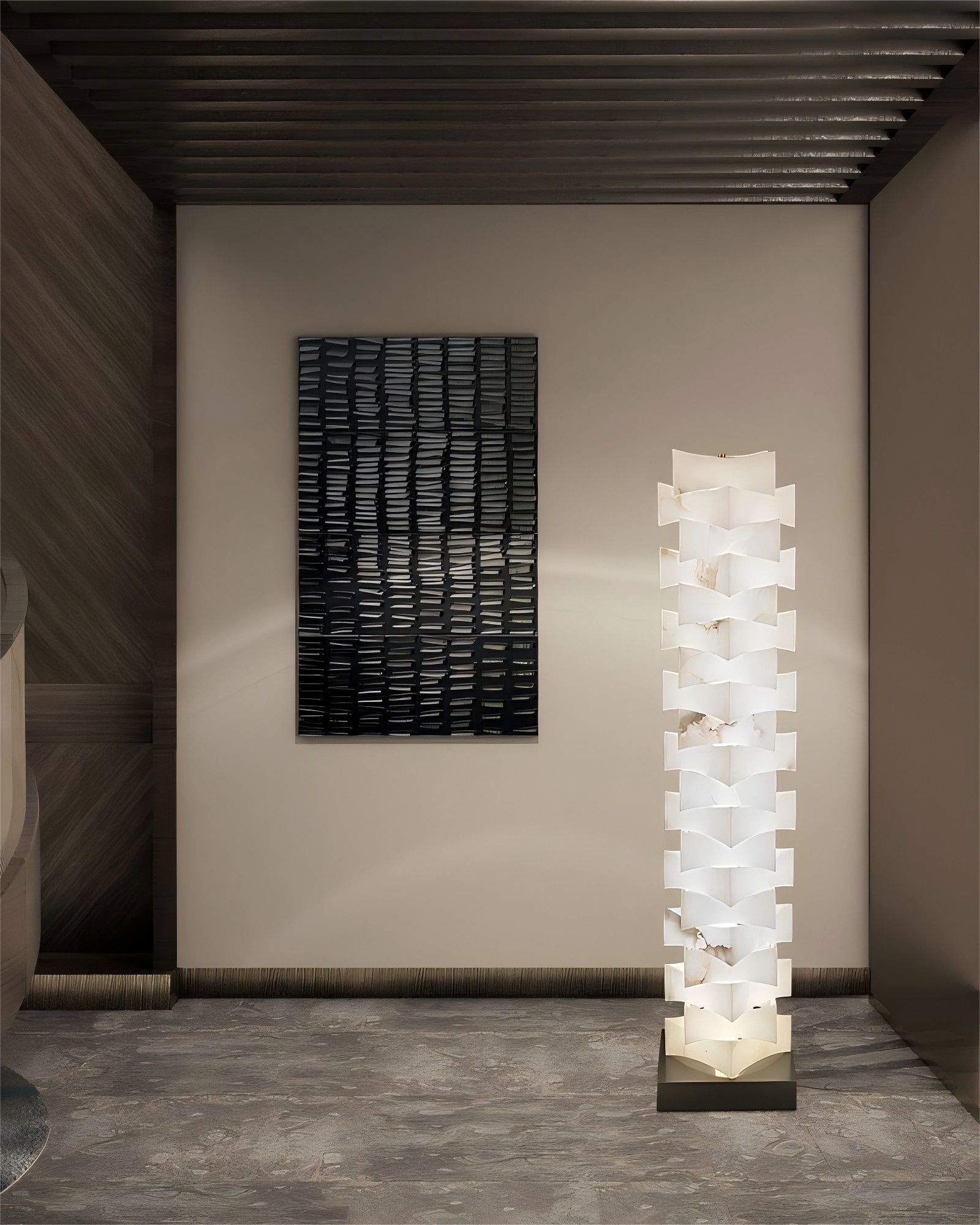 Stacked Laminated Alabaster Marble Square High Floor Lamp