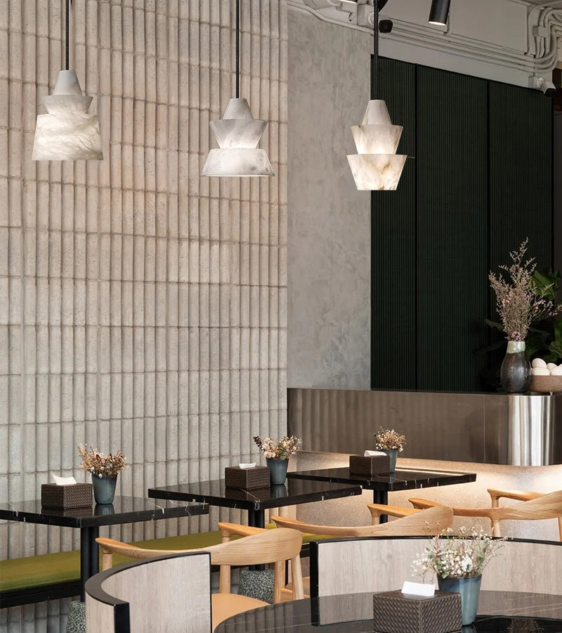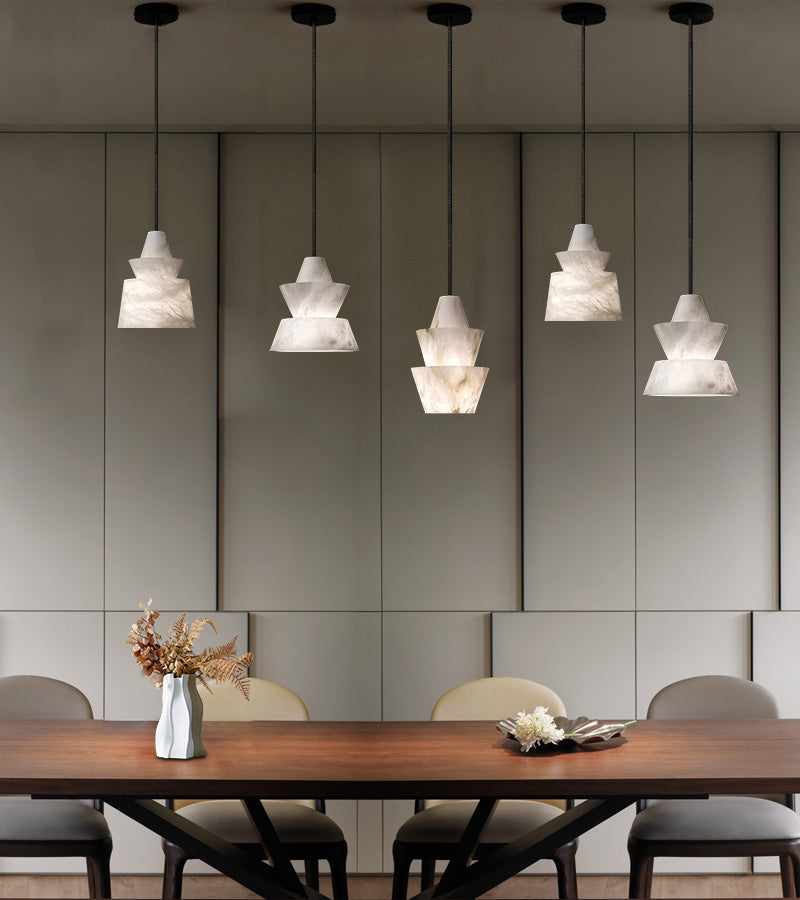 Brianna Alabaster Dining Table Pendant Modern Stacked Conical Pendant Light
