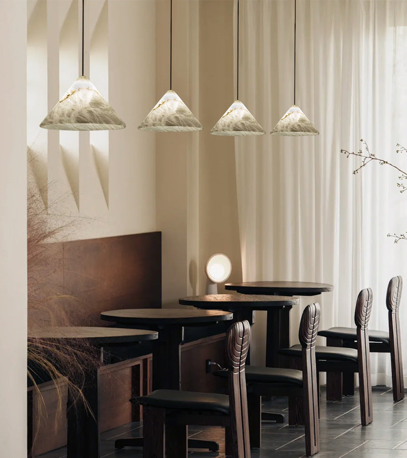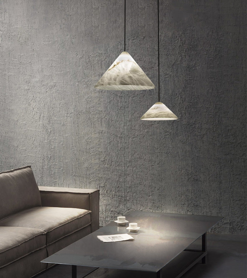 Minimalist Style White Alabaster Conical Pendant Lamp for bedroom kitchen