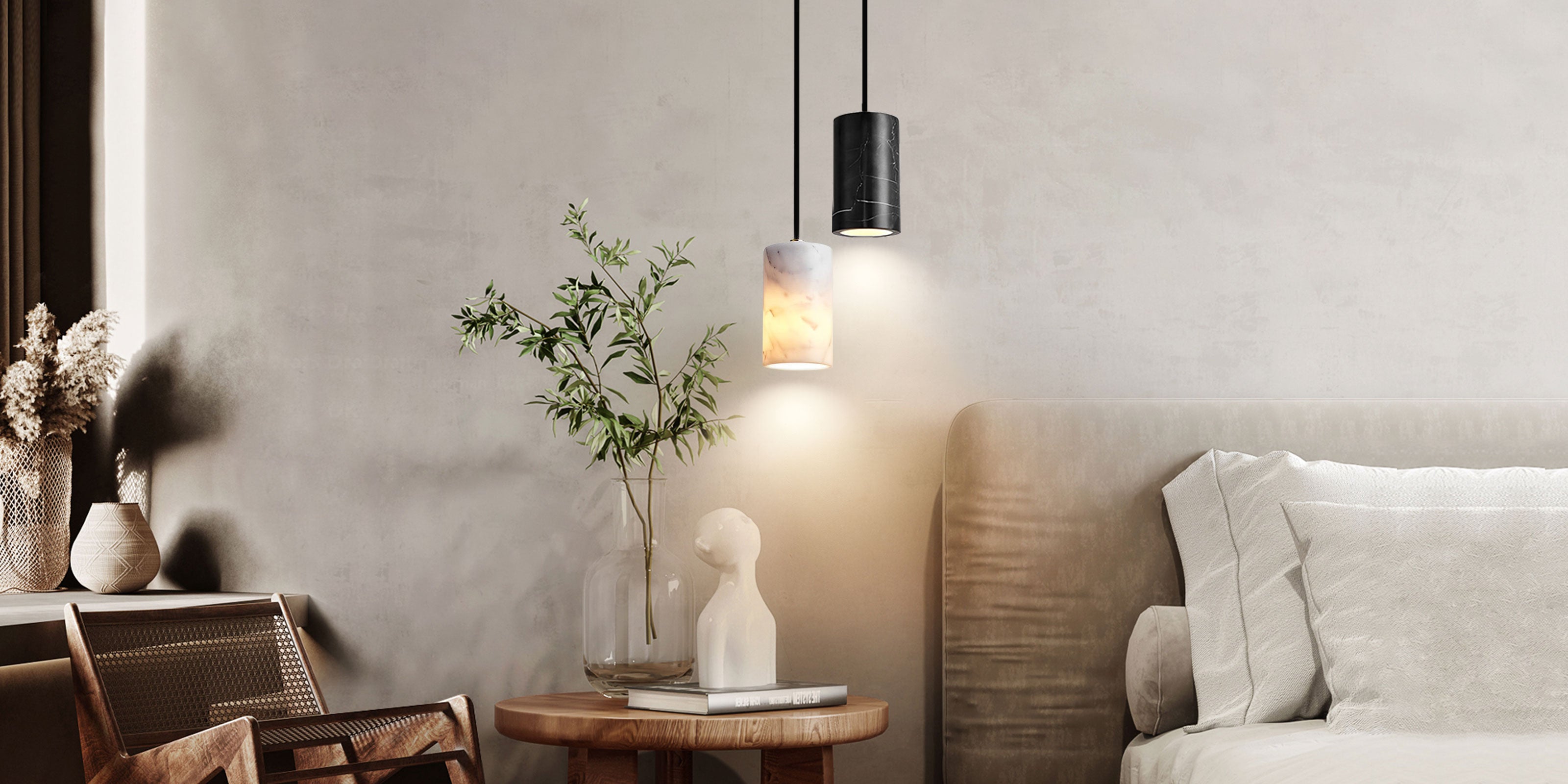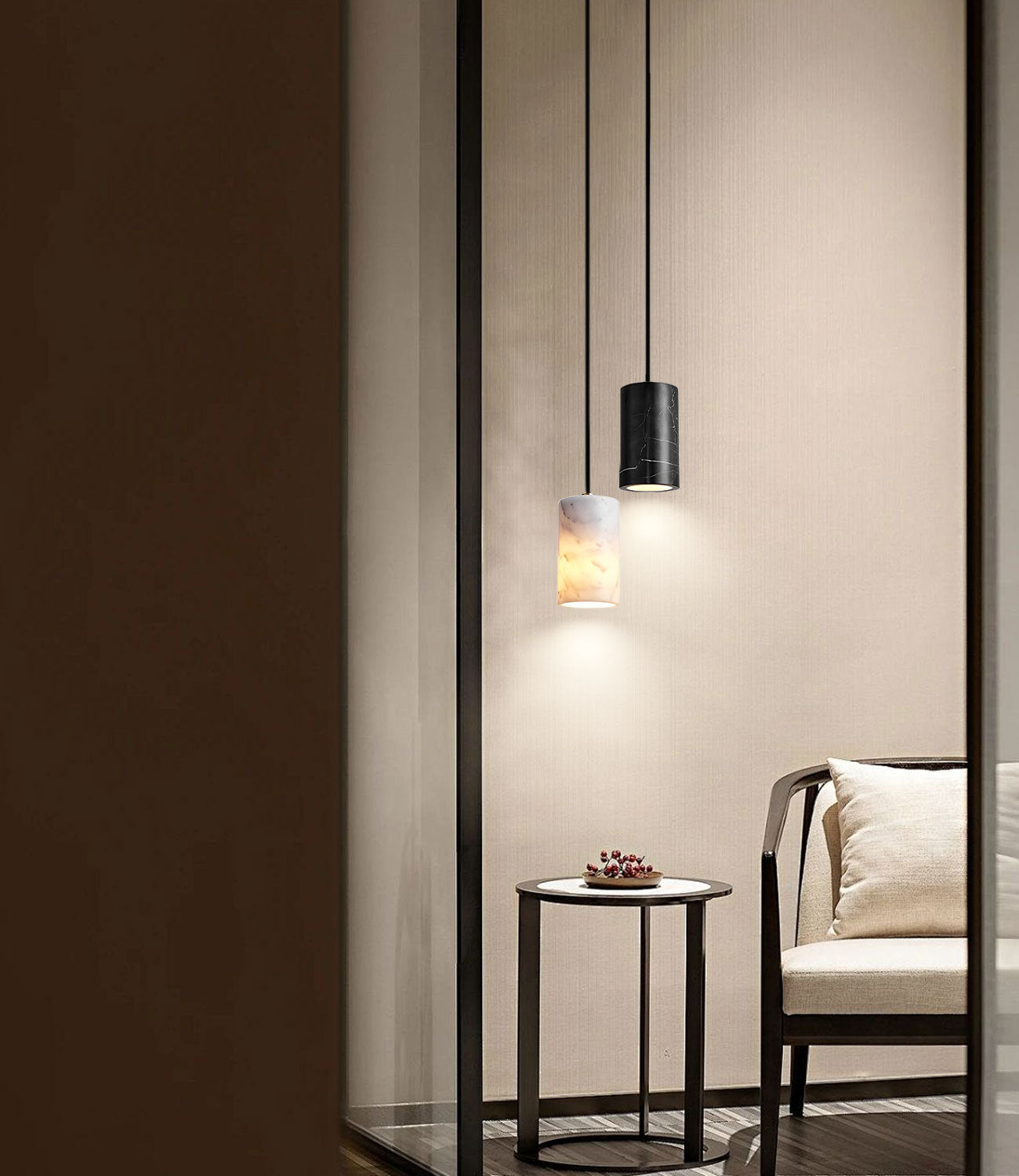 This pendant showcases a minimalistic cylindrical shape, crafted from solid fine-polished marble, adding a practical element to your space. Core blends durability with sophistication.