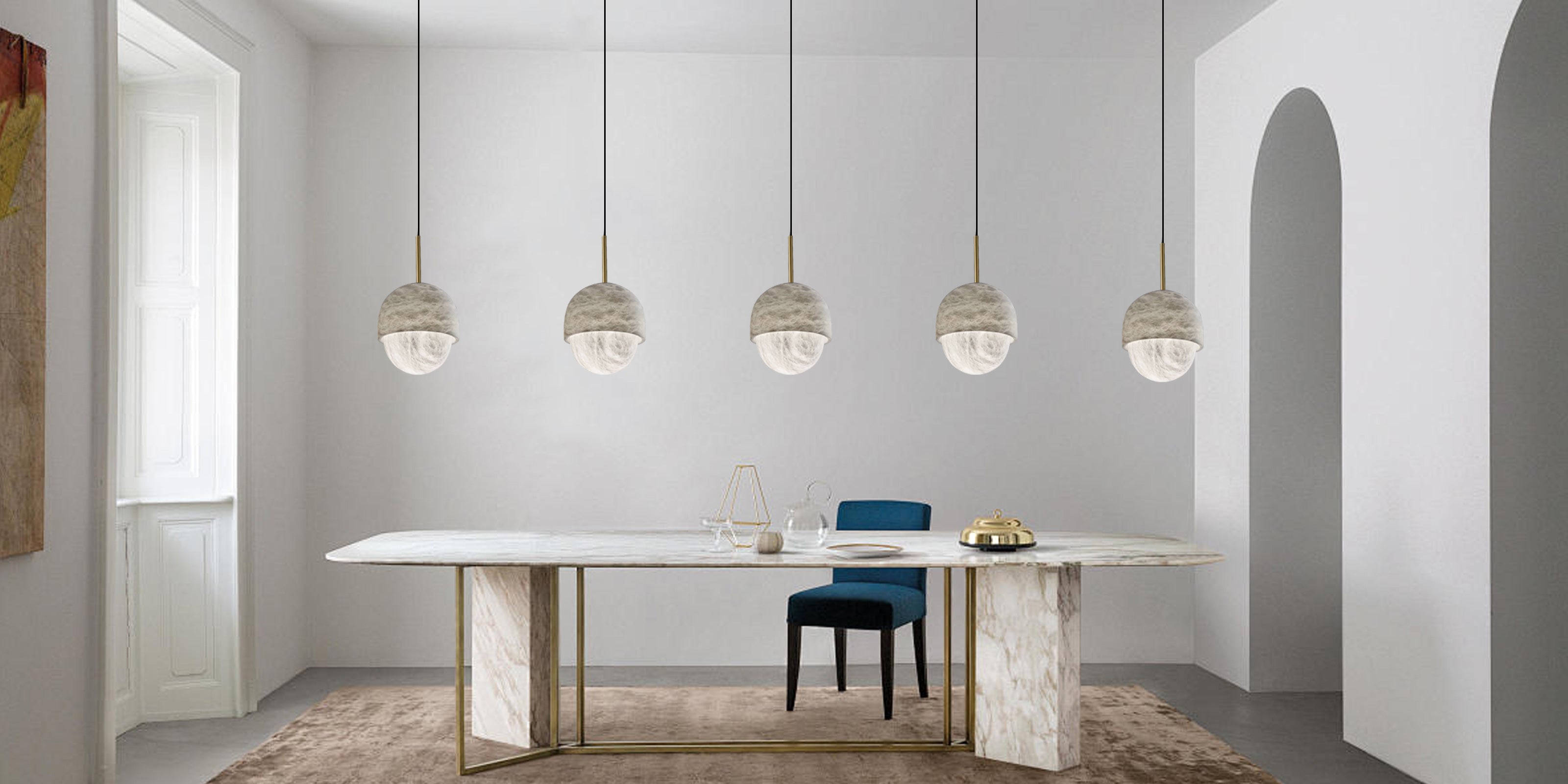 Whether single or multiple combination lighting, it seems all good. Its white marble has its own unique texture, with copper metal rods, small and delicate and beautiful.