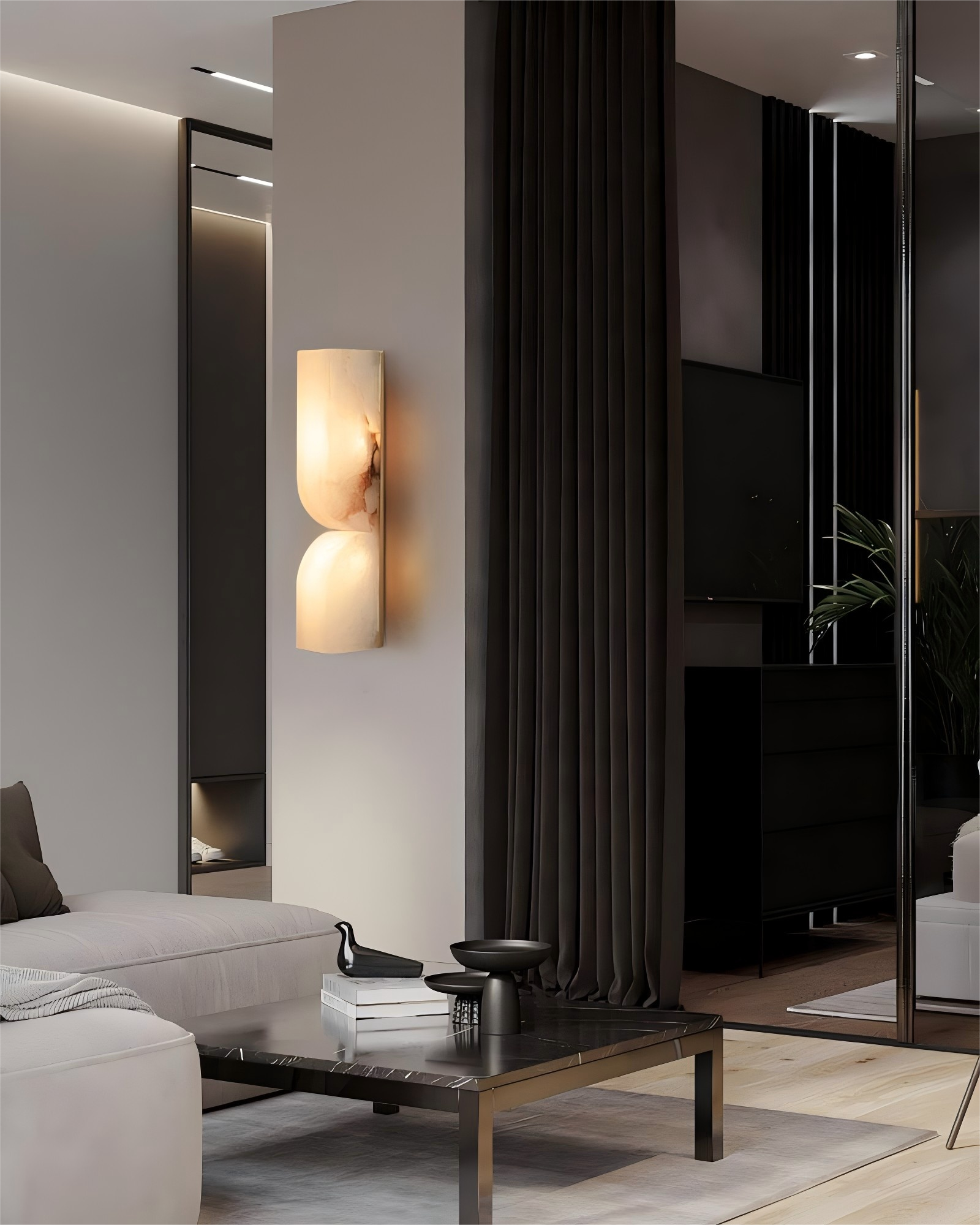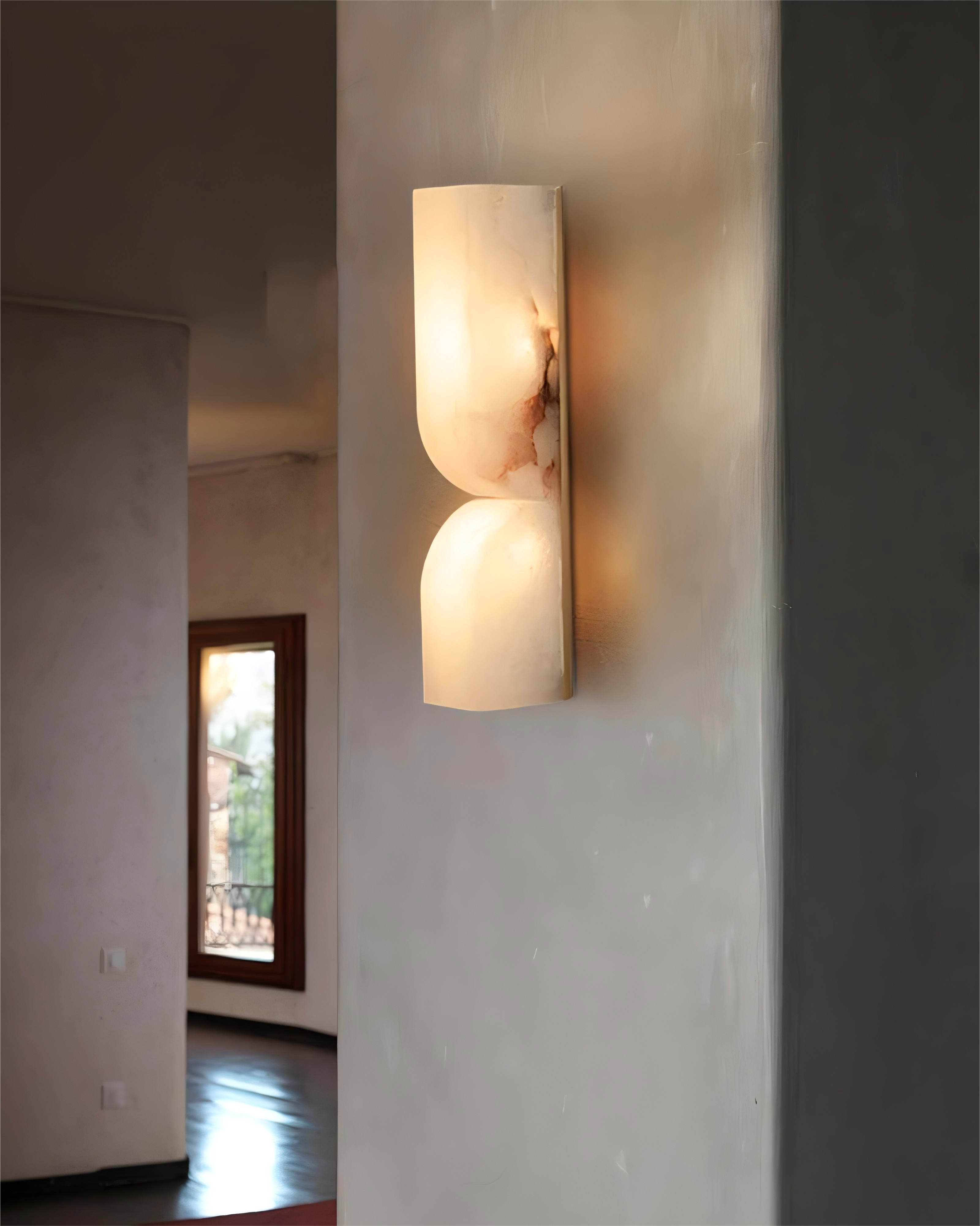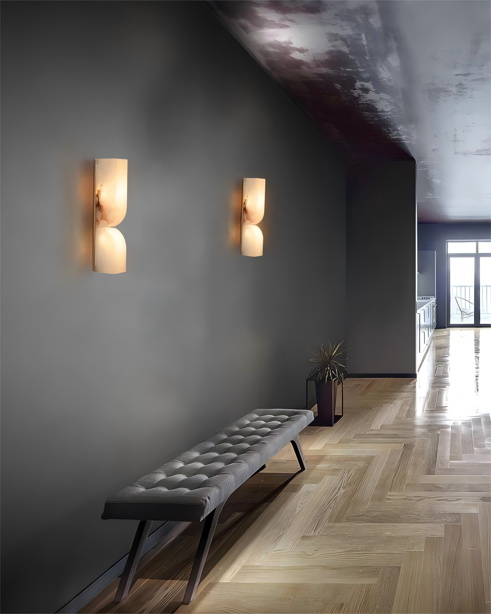 This Alabaster Essence Wall Sconce is crafted from rich alabaster material, making it a timeless LED light and decorative accessory. The solid stone is intricately carved to perfectly create intentional internal curves. Elevate your home’s aesthetic with a lamp that merges nature’s elegance and contemporary design.