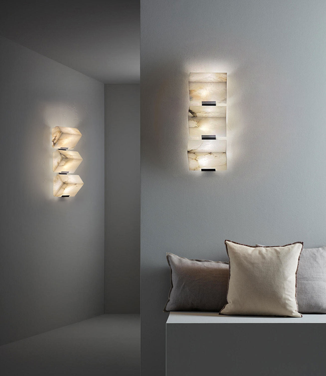 We have three size of one/two/triple alabaster panel, modern sloping design with 3-color dimming, create an comfortable atmosphere for our rooms.