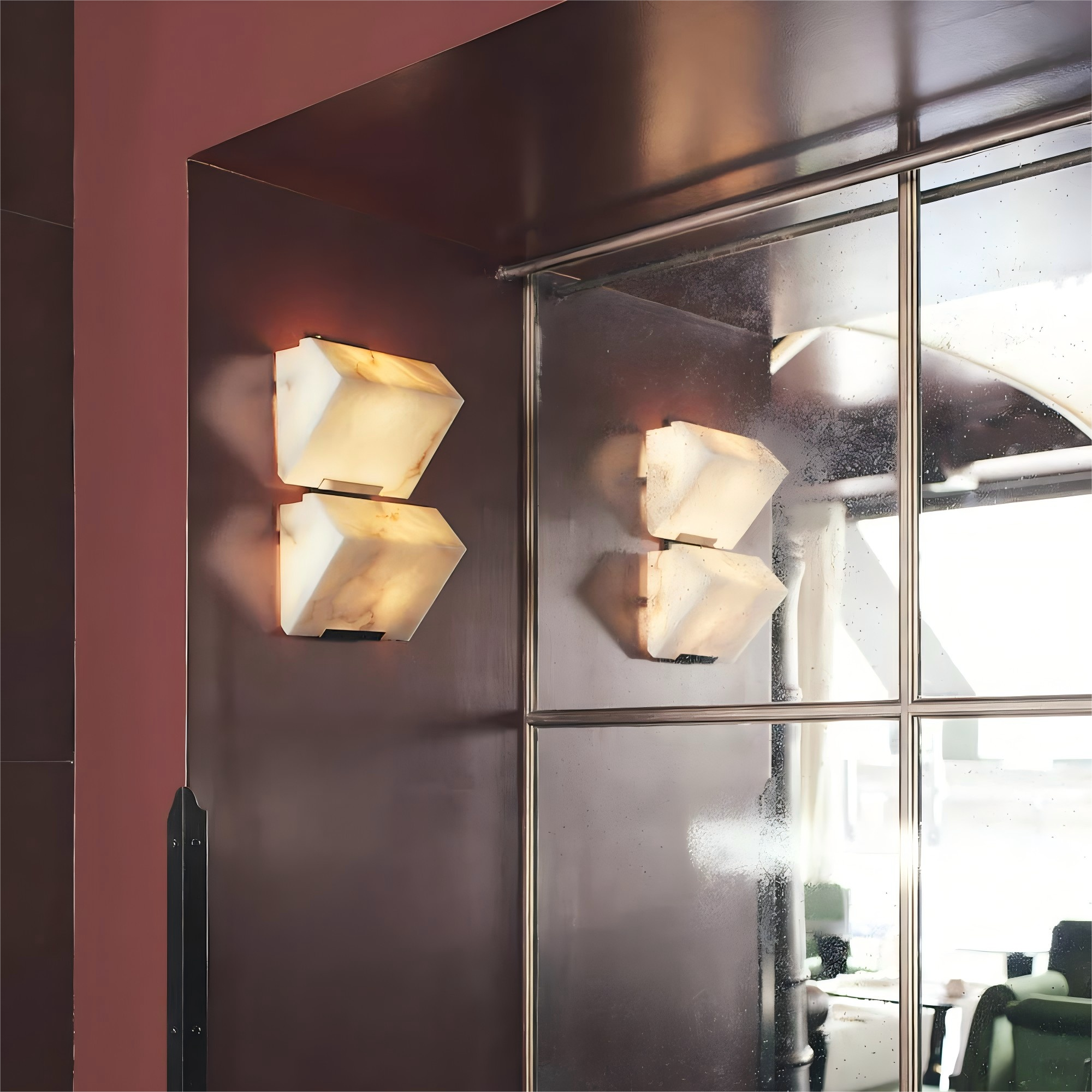 LED Triple Sloping Block Alabaster Stone Wall Sconce Lamp 6" in Black