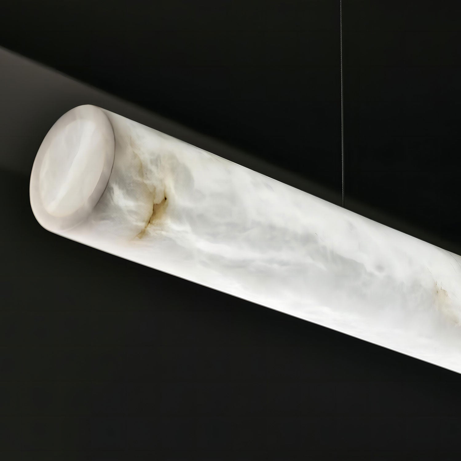 Echoes a radiant, animate pathway in suspension. The two linear extremities give an impression of parallelism and order. Depending on how it is centred when hung, the tubular structure floats horizontally or vertically in the air. Alabaster can be cleaned by wiping with a soft damp cloth.