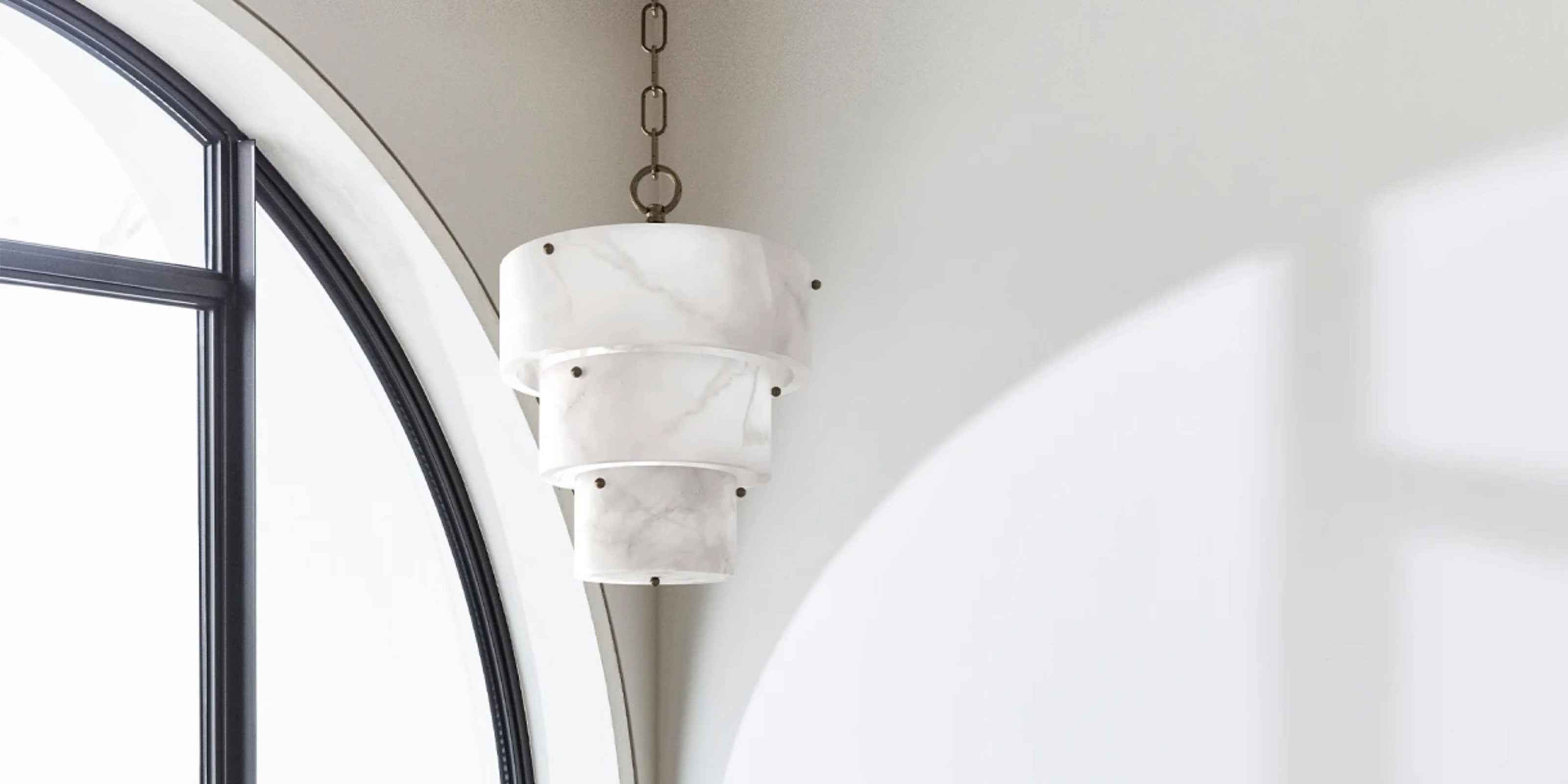 The Cleo Pendant redefines artisanal elegance with its striking three-tier cascading design, meticulously hand-carved from luminous alabaster.