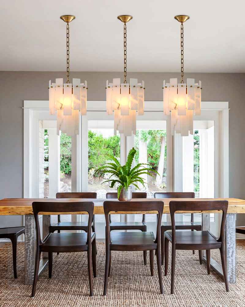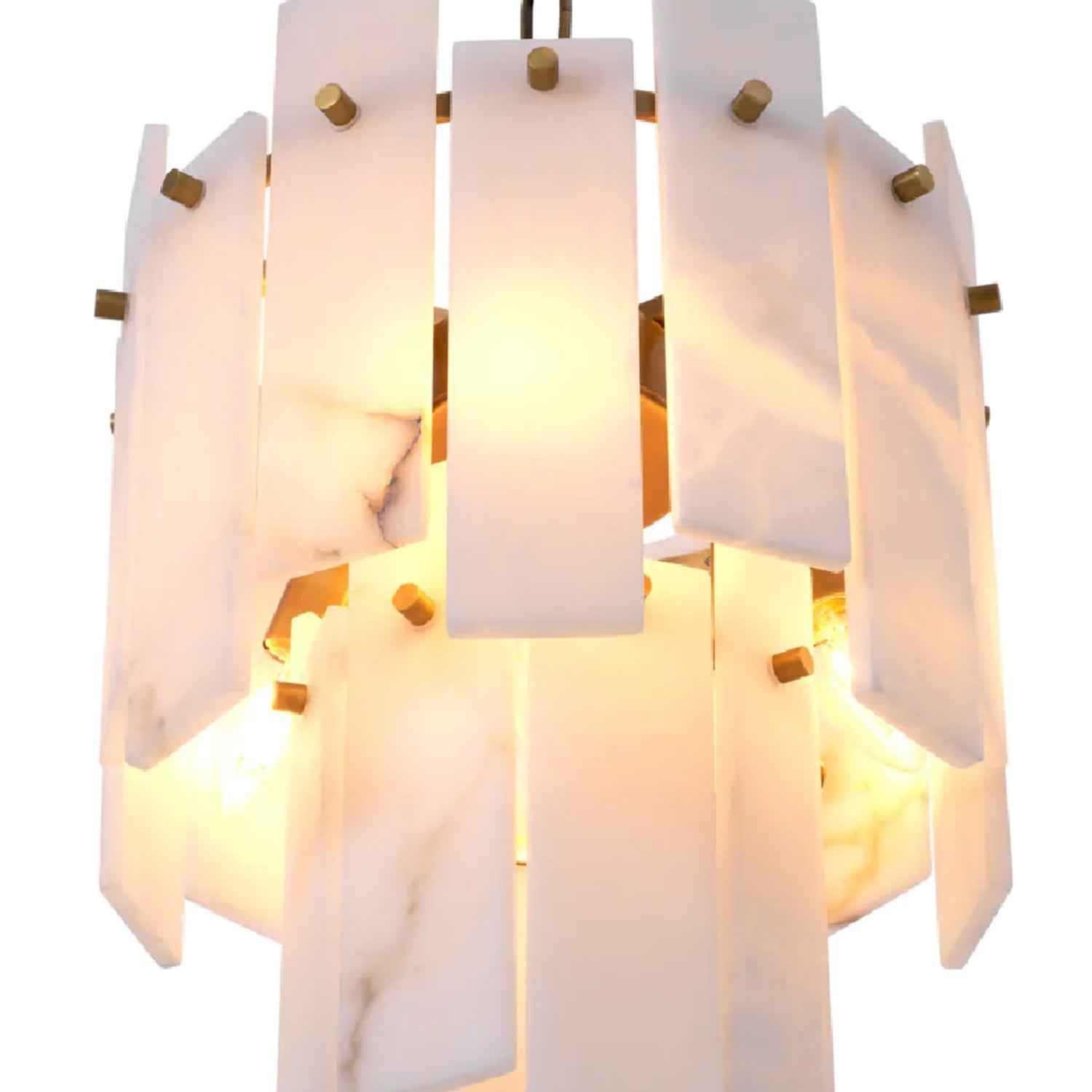 Choice a captivating ceiling chandelier that illuminates your surroundings with a harmonious charm of vintage and alabaster. With its antique brass finish and stunning details in alabaster, it adds a touch of natural beauty and elegance.