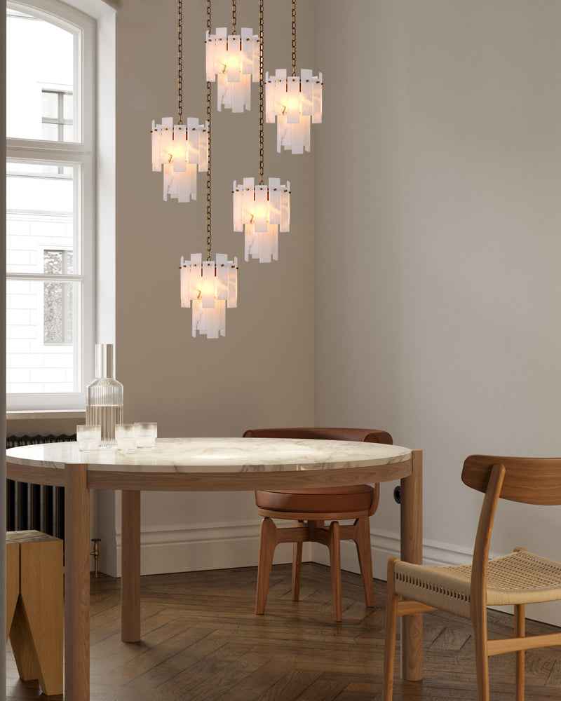 The marble ceiling chandelier is not just a lighting solution but a statement piece that adds sophistication to any room.