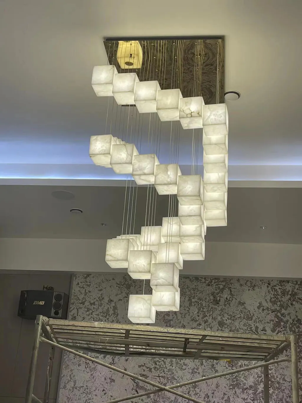 LightsStory Series Geometric Chandelier | Square Cube Cluster Natural Spanish Alabaster, Natural Stone Finish for High Ceilings and Modern Living Spaces by LightsStory.