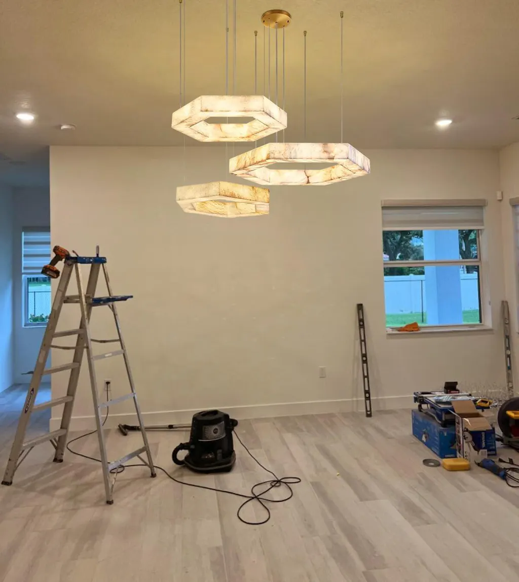 The translucency of alabaster diffuses light softly and evenly, which makes it a rustic refinement to your living space. We have Square/Rectangle/Hexagon design for choice.