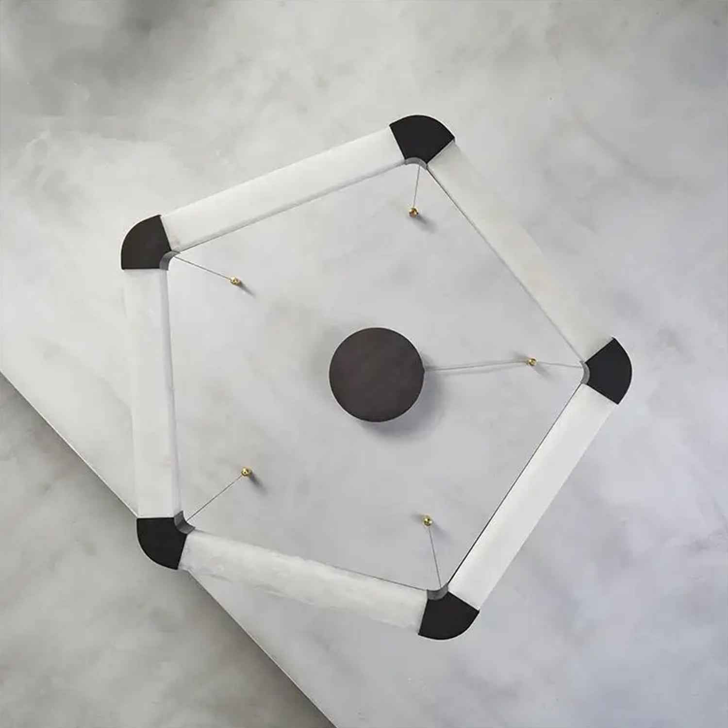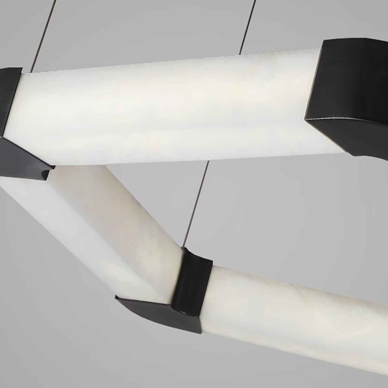 Ring lamps on string suspension in the form of pentagons made of Spanish marble and metal corners, This modular system of softly flowing linear elements can be hung individually or connected in a variety of ways. Perfect for villa,living room,kitchen,restaurant and so on.