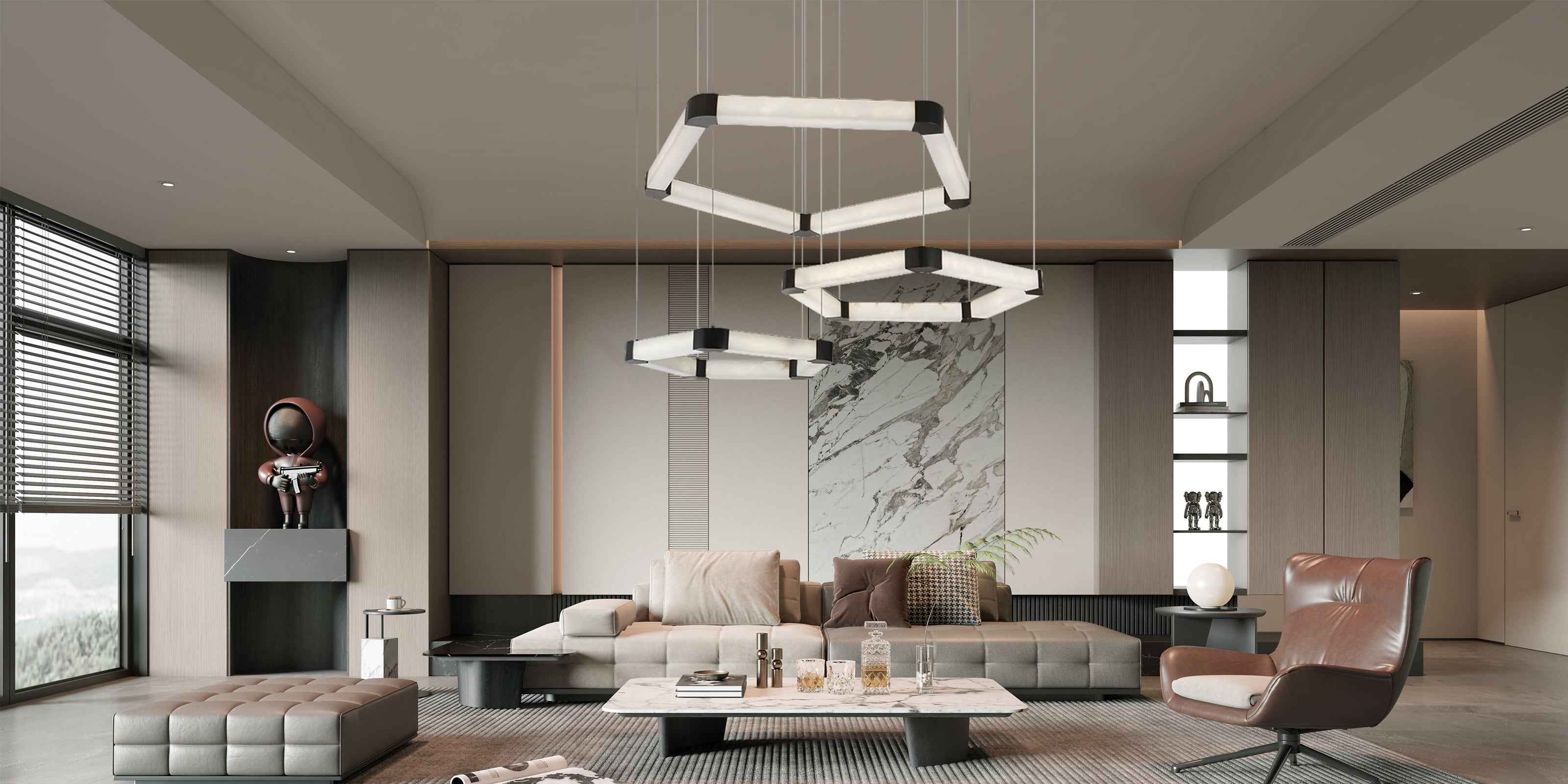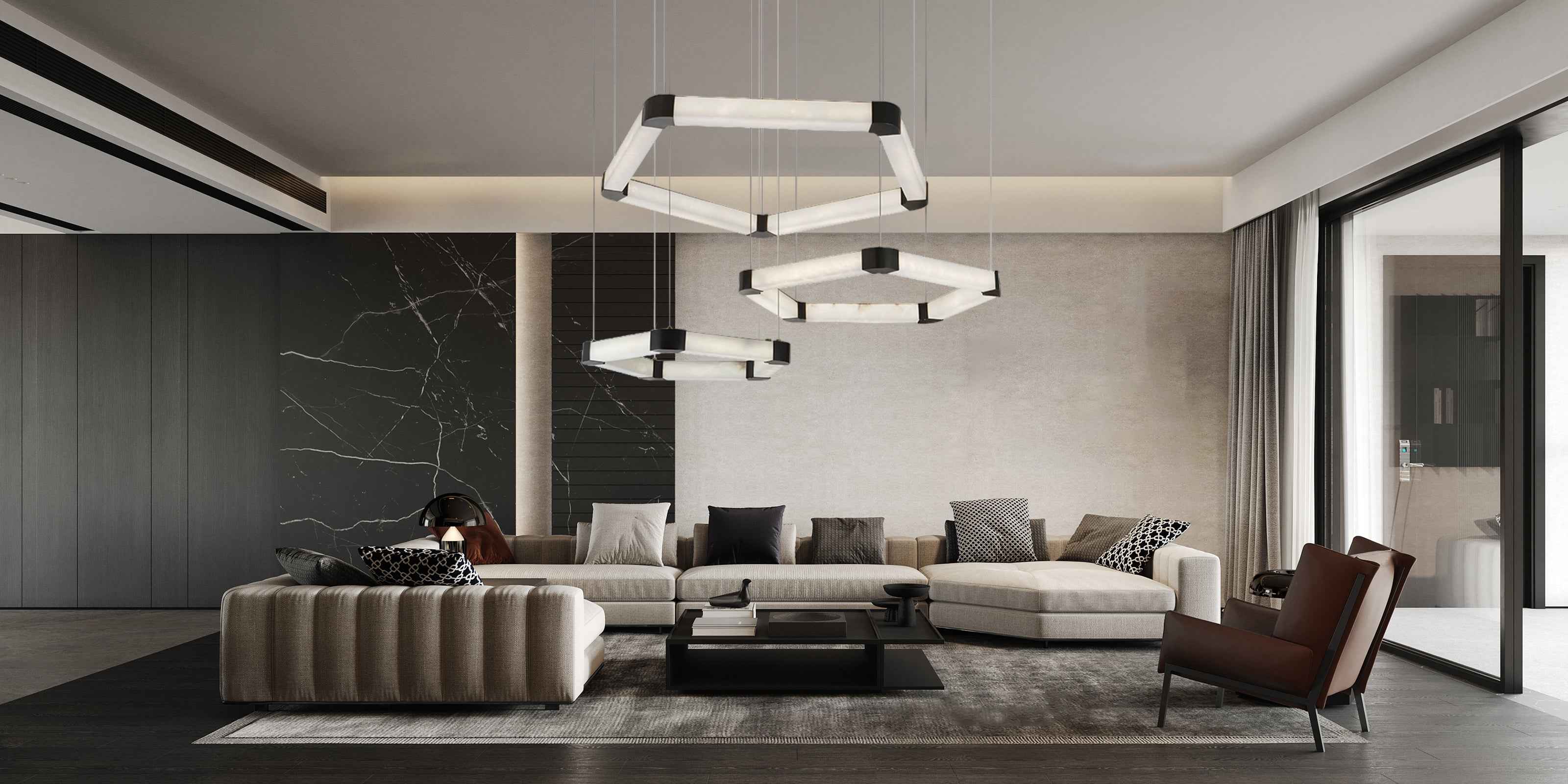 Stainless Polygonal Alabaster Chandelier