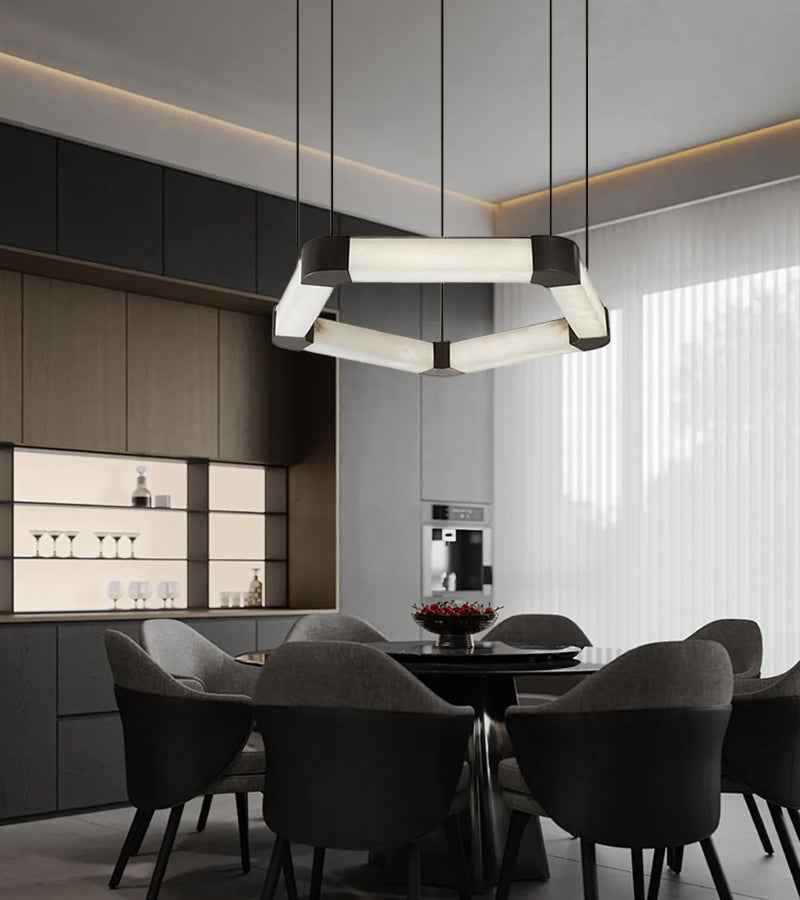 Pentagons Ring Alabaster Chandelier lamps on string suspension