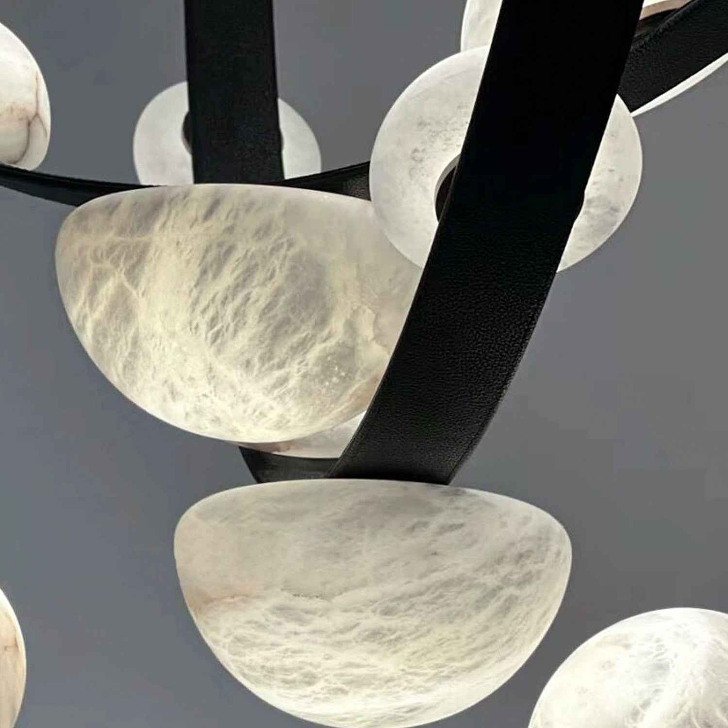 With its unique combination of leather and marble, this pendant brings a warm, natural texture to contemporary spaces. Available in an array of designs, each pendant is crafted to captivate with its sinuous lines and graceful form. Perfect for dining areas, living rooms, or any space that calls for an intimate yet stylish ambiance. Two style available.
